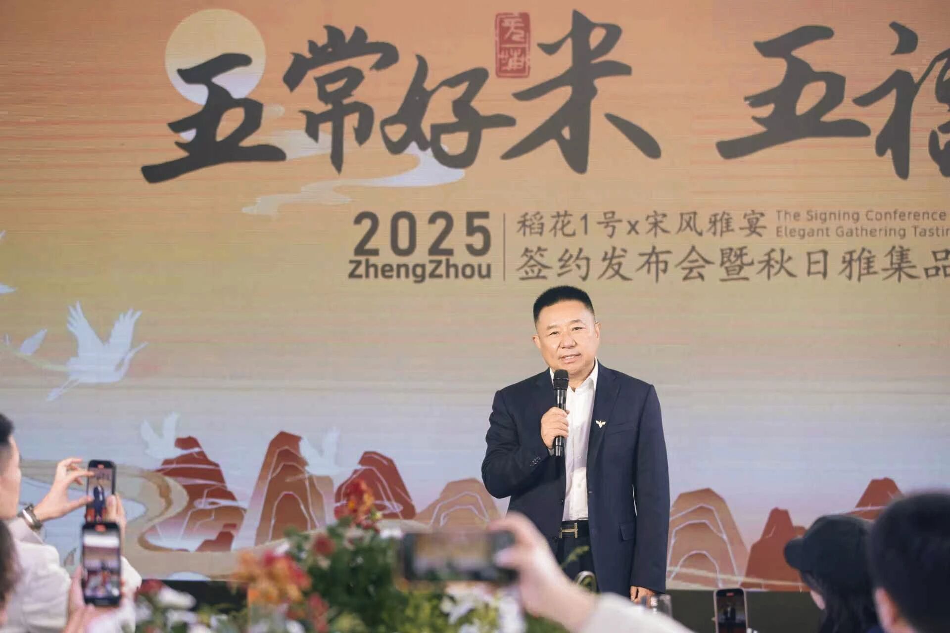 在雅樂氛圍烘托下,宋風(fēng)雅宴品牌創(chuàng)始人成國富與稻花1號五常大米董事長苑金龍共同上臺,在合作簽約協(xié)議上鄭重簽字。這一筆,不僅是 “宋風(fēng)雅宴”文化底蘊與“稻花1號”品質(zhì)堅守的深度契合,更是宋風(fēng)雅宴菜品品質(zhì)升級的又一重要時刻。