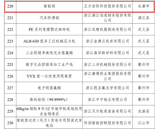 2021年1月10日,浙江省經(jīng)信廳公布了2020年度“浙江制造精品”名單,全省共263件產(chǎn)品入選,永康市企業(yè)制造的2件產(chǎn)品名列其中,王力智能鎖是其中之一,進(jìn)一步打響了永康制造品牌,也是繼1月5日,王力隨心智能門榮獲中國(guó)五金產(chǎn)品國(guó)際工業(yè)設(shè)計(jì)大賽金獎(jiǎng)之后的又一殊榮。