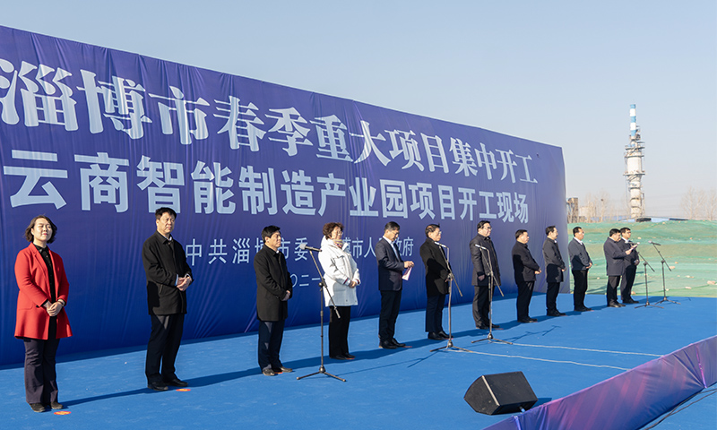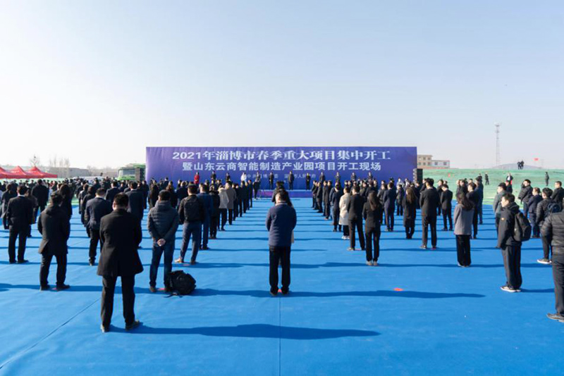 開工儀式上,江敦濤宣布2021年淄博市重大項目集中開工。此次淄博市春季重大項目集中開工活動的市、區(qū)重大項目共227個,總投資1258億元,也是全省首個重點項目集中開工的地市。山東云商智能制造產業(yè)園區(qū)一期總占地325畝,總建筑面積15萬平方米,預計今年10月份建成,約入駐企業(yè)30家。一期園區(qū)建設招商入駐完成后,預計年產值40億元,稅收貢獻2億元,新增就業(yè)崗位400人。
