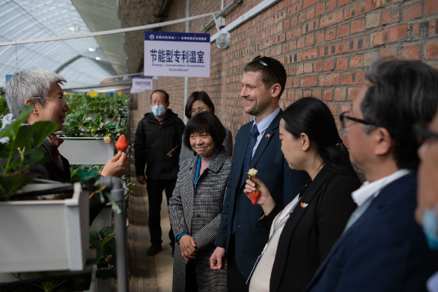 與會代表觀摩示范園并品嘗園區(qū)草莓和番茄 以色列大使館公使銜商務(wù)參贊艾曄賓和商務(wù)主任董燕在參觀完示范園區(qū)后,對以色列現(xiàn)代農(nóng)業(yè)技術(shù)在中國大地開花結(jié)果感到十分欣慰。艾曄賓說,中國人民和以色列人民有著深遠(yuǎn)的友誼,以色列農(nóng)業(yè)技術(shù)企業(yè)將全力投身到中國鄉(xiāng)村振興這項偉大的事業(yè)中來,并堅信中以農(nóng)業(yè)合作一定會為中國鄉(xiāng)村振興作出積極的貢獻。 據(jù)了解,以色列艾森貝克公司2016年1月正式加入金正大集團。艾森貝克的加入,不僅加快了金正大國際化發(fā)展的步伐,也為集團在現(xiàn)代設(shè)施農(nóng)業(yè)領(lǐng)域發(fā)力奠定了基礎(chǔ)。 3月24號下午的論壇由以色列駐華大使館商務(wù)處商務(wù)主任董燕女士主持,以色列駐華大使館公使銜商務(wù)參贊艾曄賓、中國農(nóng)業(yè)科技園區(qū)規(guī)劃專家、中國農(nóng)業(yè)科學(xué)院客座教授張成波、山東省農(nóng)業(yè)廳國際合作處二級調(diào)研員宋蓮萍、國際肥料學(xué)會執(zhí)行董事、金正大集團副總裁翟際棟、中國國際衛(wèi)視中文臺臺長湯世珺參加了“2021以色列現(xiàn)代農(nóng)業(yè)技術(shù)應(yīng)用與推廣論壇”, 論壇嘉賓就中以農(nóng)業(yè)科技合作,賦能鄉(xiāng)村產(chǎn)業(yè)振興這個主題進行了討論及深入交流,將在鄉(xiāng)村振興、農(nóng)業(yè)綠色發(fā)展、農(nóng)業(yè)科技研發(fā)和成果轉(zhuǎn)化、新媒體參與農(nóng)業(yè)品牌推廣等領(lǐng)域加強合作。