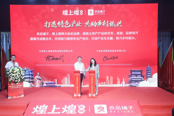 作為食品行業(yè)兩家頭部品牌,煌上煌與良品鋪子戰(zhàn)略合作意義深遠。 此次發(fā)布會上,雙方簽訂戰(zhàn)略合作協(xié)議,確定今后將由煌上煌全面負責良品鋪子團購產(chǎn)品在江西市場的銷售。借由此次團購業(yè)務(wù)的合作為起點,未來煌上煌與良品鋪子將從渠道和產(chǎn)品多方面深入合作,共同深耕江西區(qū)域市場?;蜕匣蜕罡?8年,以醬鹵肉制品、佐餐涼菜快捷消費食品及米制品的開發(fā)、生產(chǎn)和銷售為主營業(yè)務(wù),目前在全國分布有8大加工基地、近5000家連鎖專賣店,是醬鹵行業(yè)第一股。近年來,公司大力發(fā)展“1+N”營銷模式,在行業(yè)內(nèi)建立豐富的銷售渠道和品牌資源,江西市場份額領(lǐng)跑行業(yè),占據(jù)主導地位,特別是在江西流通和團購市場,沉淀了廣闊的沃土。