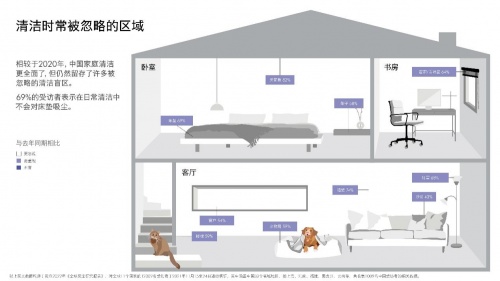 而塵螨的排泄物是常見的過敏原之一,對付塵螨和頑固灰塵需要徹底的深度清潔,但很多亟需解決的“精細深度”清潔痛點,往往制約了人們深度清潔的實際效果。 痛點一,難以清潔的復雜表面及易被忽視的死角縫隙依舊藏污納垢。戴森提醒消費者,居家環(huán)境中,除地面、桌面等易受重視的大面積平整區(qū)域外,沙發(fā)、床褥等室內軟裝是大部分中國家庭的清潔盲區(qū)。同時,如鍵盤、裝飾物等結構復雜的表面,或燈罩、顯示屏等易碎或易損的物品,往往難以實現(xiàn)深度清潔;家裝中難以觸及的縫隙角落易形成灰塵堆積,也往往藏污納垢,或許正是這些造成了人們在深度清潔中知難而退,令清潔效果事倍功半。 痛點二,養(yǎng)寵家庭飽受毛發(fā)清潔及“看不見的”灰塵困擾?!秷蟾妗凤@示,中國的養(yǎng)寵率已達35%。而寵物毛發(fā)及皮屑上攜帶“看不見的”致敏蛋白質顆粒,因質量輕、體積小,易隨空氣飄散至家中各處,在易感人群中可能會引發(fā)過敏反應;同時,因毛發(fā)具有天然油脂及彈性,極易在清潔過程中纏繞打結,難以用普通清潔工具清除,使日常清潔更為棘手。 痛點三,不當除塵易導致“二次污染”。中國家庭慣用的傳統(tǒng)清潔方式,如掃地或利用纖維抹布、靜電除塵棒擦除灰塵,不僅清潔效率低,還容易引起揚塵,導致花粉等灰塵顆粒懸浮,并隨空氣流動而遷移到家中各個角落,變成“無效除塵”、造成對室內環(huán)境的“二次污染”。同時,“看不見的灰塵”在空氣中懸浮傳播,或可能被人體吸入,從而成為潛在的健康隱患。