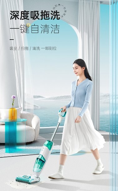 Lite首先在色彩營銷上就別具一格,十分抓人眼球。薄荷藍(lán)搭配在白、灰的底色上,清新活潑的視覺效果非常符合年輕人群的氣質(zhì)和審美偏好。整體流暢的線條和僅3.35kg的超輕機(jī)身,讓整款產(chǎn)品都更輕盈,小個(gè)子女生也能輕松提拿,讓洗地不再是體力活,為年輕人騰出更多休閑娛樂的時(shí)間。