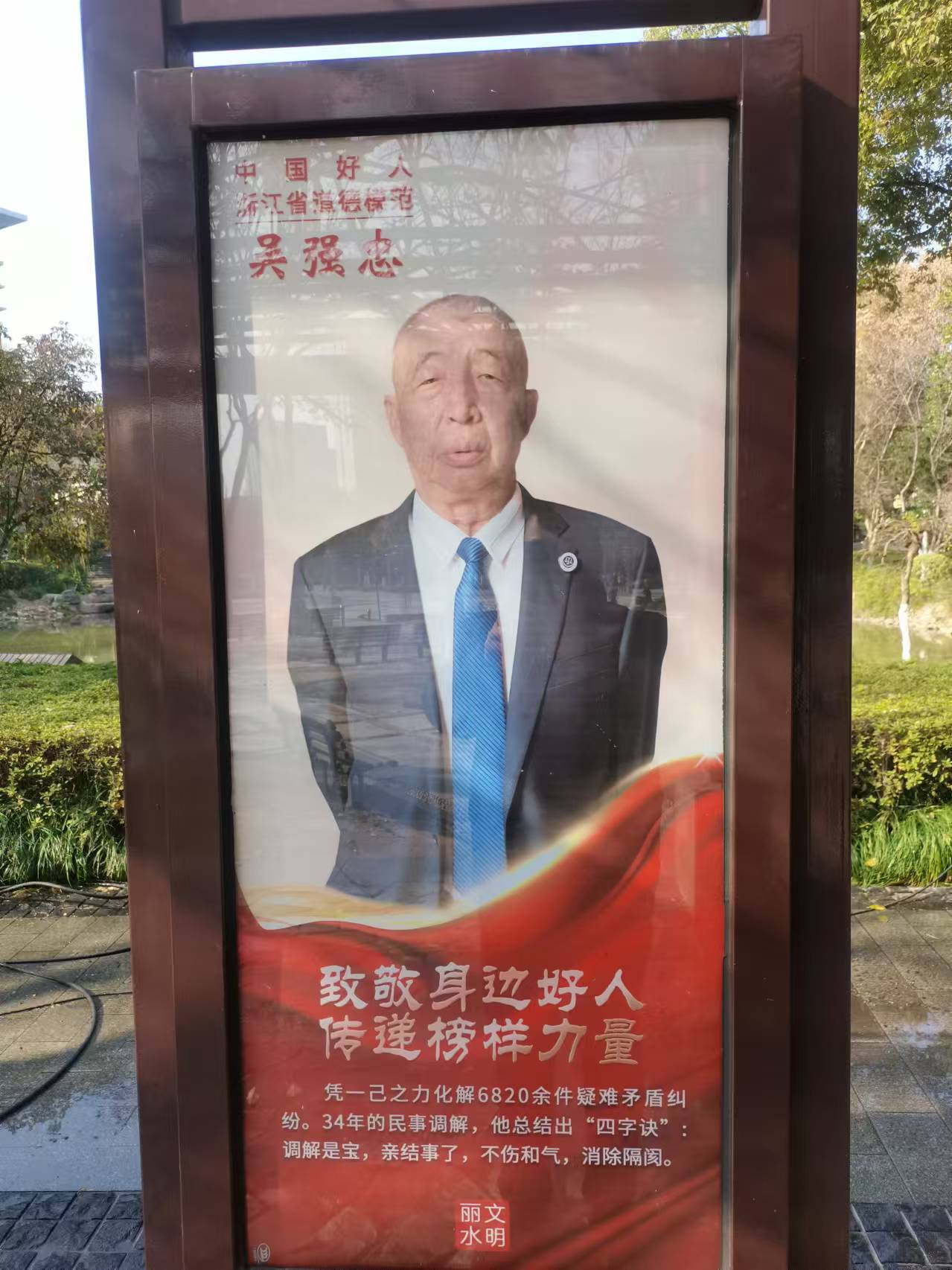 2024年4月11日麗水市政法委還邀請吳強忠在全市政法平安大會上作“矛盾化解”典型發(fā)言;縣司法局毎年舉辦全縣人民調(diào)解員、法律明白人培訓班邀請他授課;中國網(wǎng)2024年7月16日刊登了吳強忠撰寫的《淺議人民調(diào)解為人民注重方法與技巧》一文。