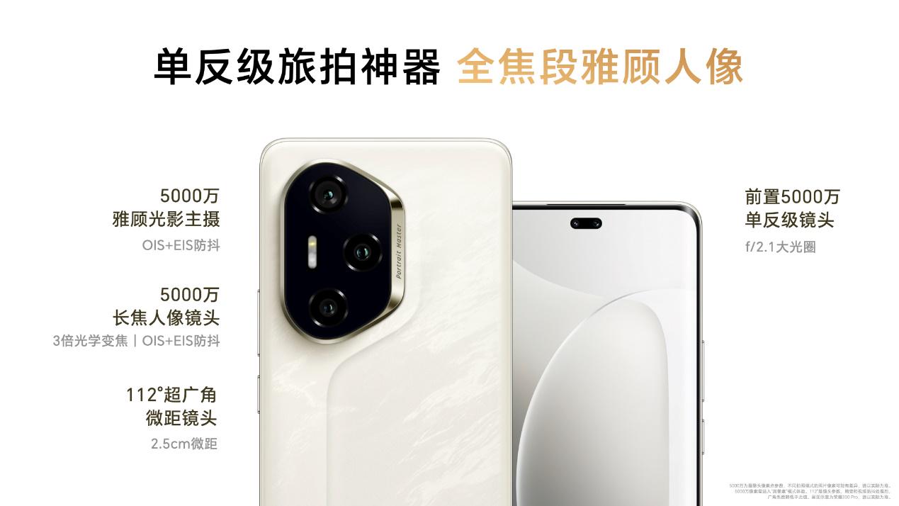 配置方面,榮耀300 Pro搭載了索尼IMX906超大底5000萬(wàn)像素雅顧光影主攝,配合5000萬(wàn)像素長(zhǎng)焦人像鏡頭、1200萬(wàn)像素112°超廣角微距鏡頭,以及前置5000萬(wàn)像素單反級(jí)鏡頭。榮耀300 Ultra更進(jìn)一步,引入5000萬(wàn)像素潛望長(zhǎng)焦人像鏡頭,為用戶提供了全焦段影像解決方案,滿足不同場(chǎng)景下的拍攝需求,尤其是旅行攝影時(shí)的全場(chǎng)景需求。特別值得一提的是,榮耀300 Pro和Ultra版本還配備了旗艦級(jí)的榮耀鷹眼精彩抓拍技術(shù),能夠智能識(shí)別并精準(zhǔn)捕捉每一個(gè)精彩瞬間。
