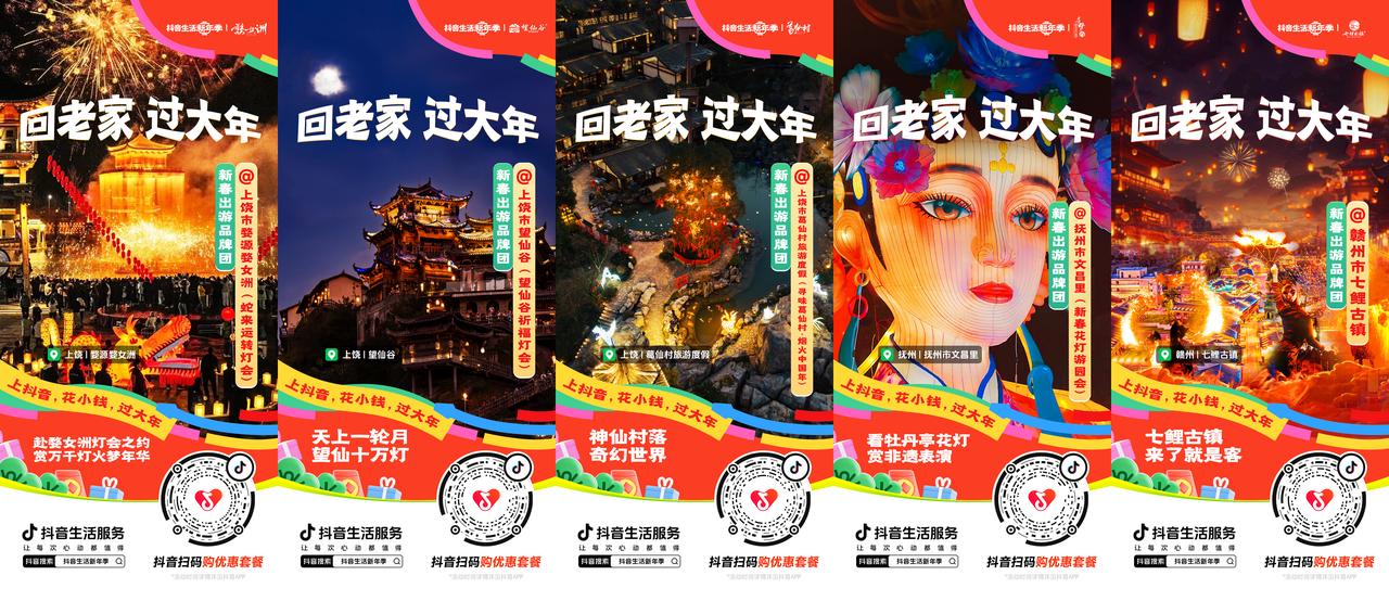五福耀新春,歡樂過大年!快帶上你的家人和朋友們一起出發(fā),盡情感受濃厚的新春氛圍,過不一樣的中國年!上抖音搜索#新春吃喝玩樂節(jié) ,了解更多春節(jié)出游指南,更有新春燈會廟會等您來!這次,我們一起回老家,過大年!