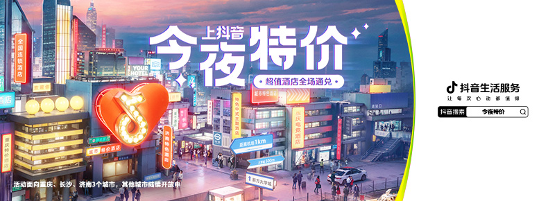 大牌酒店隨訂隨住?抖音生活服務(wù)聯(lián)合品牌酒店推出「今夜特價(jià)」超值通兌