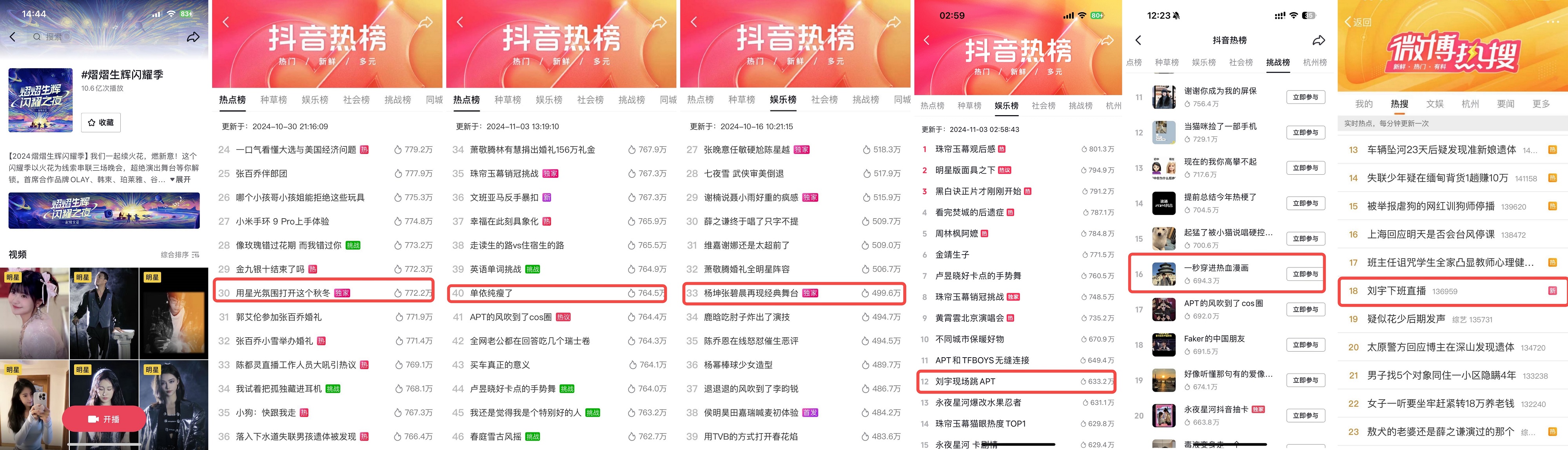 以“火”為名 主打一個陪伴! 《熠熠生輝閃耀季》IP是抖音在雙11節(jié)點策劃的一系列直播晚會,今年除了延續(xù)“快樂”主題之外,還以“火”為名,歌頌生活中那些無處不在的“火”。這把“火”,可以是天邊的星火點點,也可以是城市里的萬家燈火;可以是朋友之間的“火花”,也可以是閃耀著的你我。 10月13日、10月31日、11月2日,抖音《熠熠生輝閃耀季》之《熠熠生輝閃耀之夜》《熠熠生輝星火之夜》《熠熠生輝燈火之夜》三場晚會火熱連播,一刻不停,輪番獻上兼具新意與實力的魅力舞臺。抖音演出、抖音電商、浙江衛(wèi)視、Z視介APP等官方賬號同步直播,四十多位新老明星齊聚,吸引了無數(shù)觀眾朋友蹲守直播。