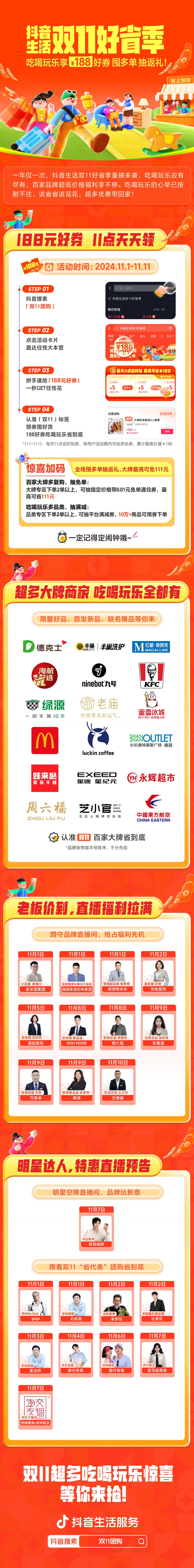 雙11吃喝玩樂(lè)上抖音,188好券福利百家大牌享不停!