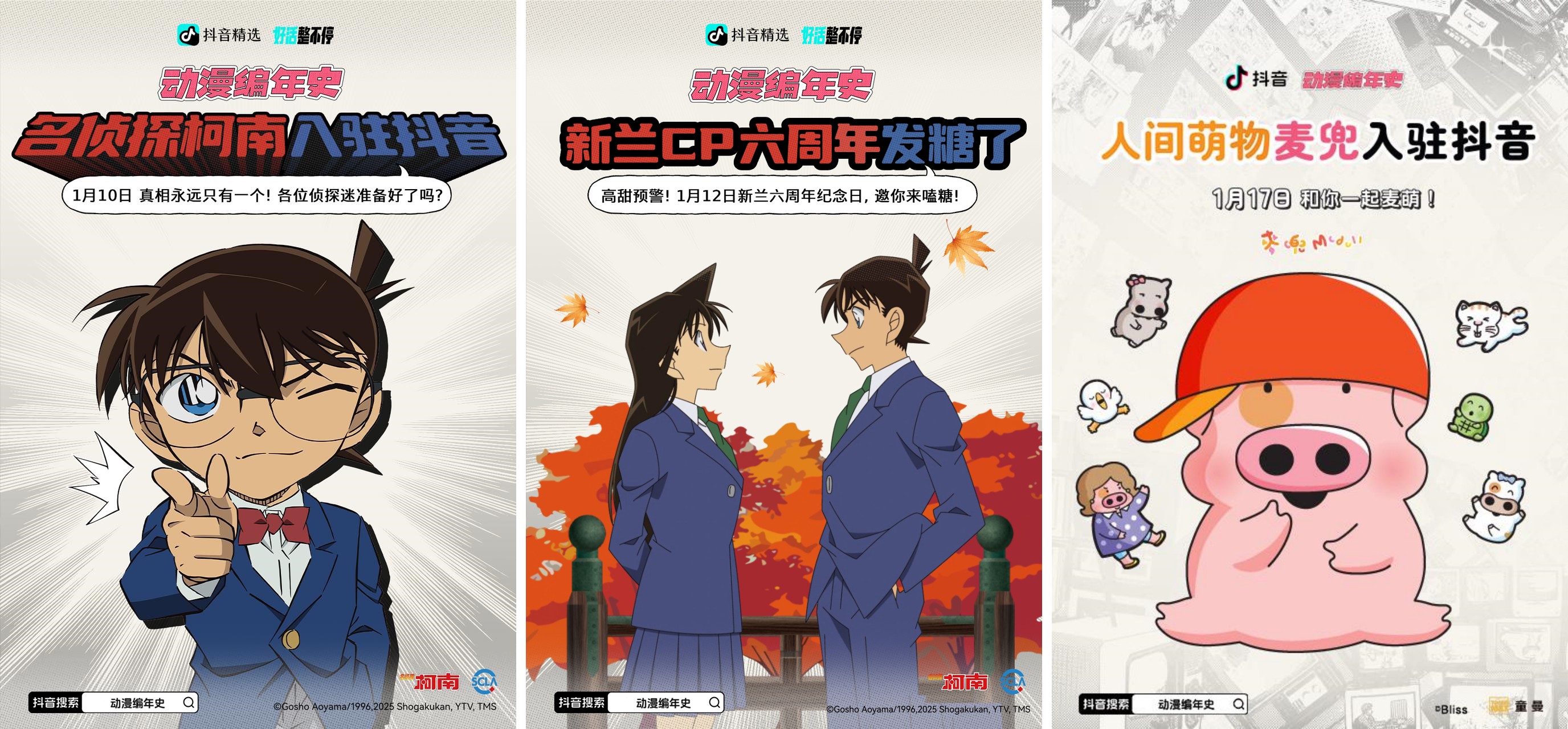 經(jīng)典IP“組團重聚” 以懷舊為名書寫新篇 無論是早期簡單的手繪短片還是如今借助特效技術(shù)制作的長篇 ,動畫自誕生之日起就用獨特的世界觀、鮮活的角色和絢麗的畫面,傳遞著愛與希望的正能量,溫暖著一代代觀眾。近年,由動畫IP及其衍生品引發(fā)的二次元熱潮在年輕人當(dāng)中盛行,在抖音,二次元相關(guān)內(nèi)容的“流量”也持續(xù)走高。自去年11月起,抖音二次元上線的“動漫編年史”專題活動,在系統(tǒng)回顧近百年動畫發(fā)展史的同時,為所有二次元愛好者炮制了一場跨次元的年終狂歡。 這場狂歡以懷舊開篇。假面騎士、超級戰(zhàn)隊和奧特曼三大英雄齊聚抖音,喚醒人們對特攝動畫的時代記憶。1月10日,“柯南”入駐抖音,引來全抖音網(wǎng)友PK名偵探柯南,不僅吸引到“專業(yè)對口”的配音達(dá)人、動漫coser和剪輯類博主前來互動,還有萌寵、京劇票友等不同圈層的網(wǎng)友上演跨界PK??履系臒岫壬形赐嗜?,隨著1月17日“麥兜”入駐,網(wǎng)友們又紛紛考古起麥兜故事里看似搞笑實際扎心的瞬間,激起人們更多關(guān)于親情、成長等話題的深度思考。“新蘭CP六周年發(fā)糖了”“航海王動畫25周年” 等話題,則成為大型動漫coser團建現(xiàn)場,腦洞大開的小劇場不僅讓cosplay圈層受眾眼前一亮,也引發(fā)更多圈外網(wǎng)友的關(guān)注。