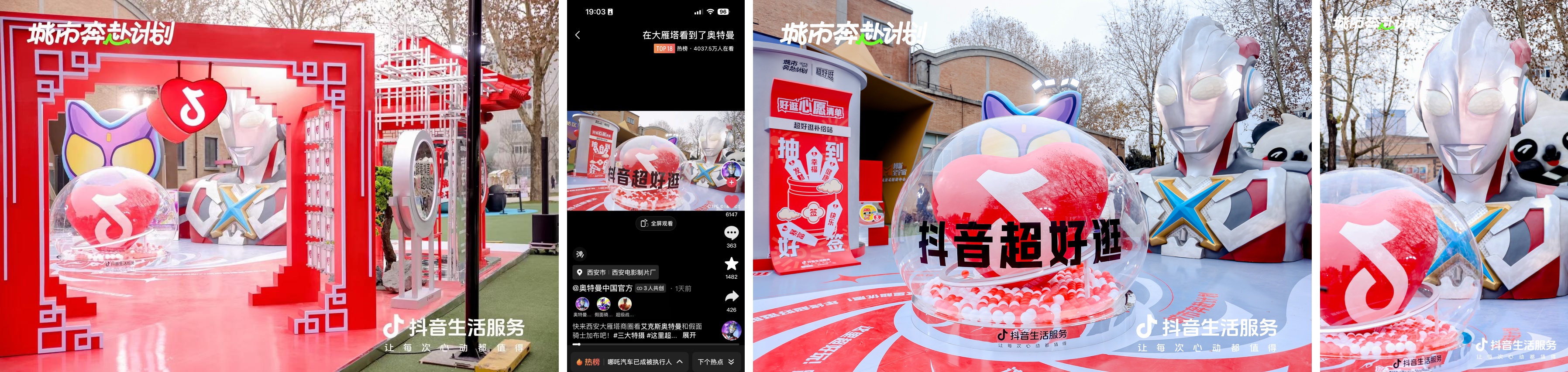 除了線上聯(lián)動IP,線下同樣熱鬧歡騰。上海、杭州、西安、武漢四城商圈bigday快閃活動強勢吸睛,引爆商圈熱度,讓逛街充滿passion!其中,奧特曼空降西安大雁塔和上海靜安寺,#奧特曼空降靜安寺、#在大雁塔看到了奧特曼等4個熱點登上全國榜帶動商圈活動出圈,活動所在的久光百貨交易破億,IP事件營銷曝光超2億。