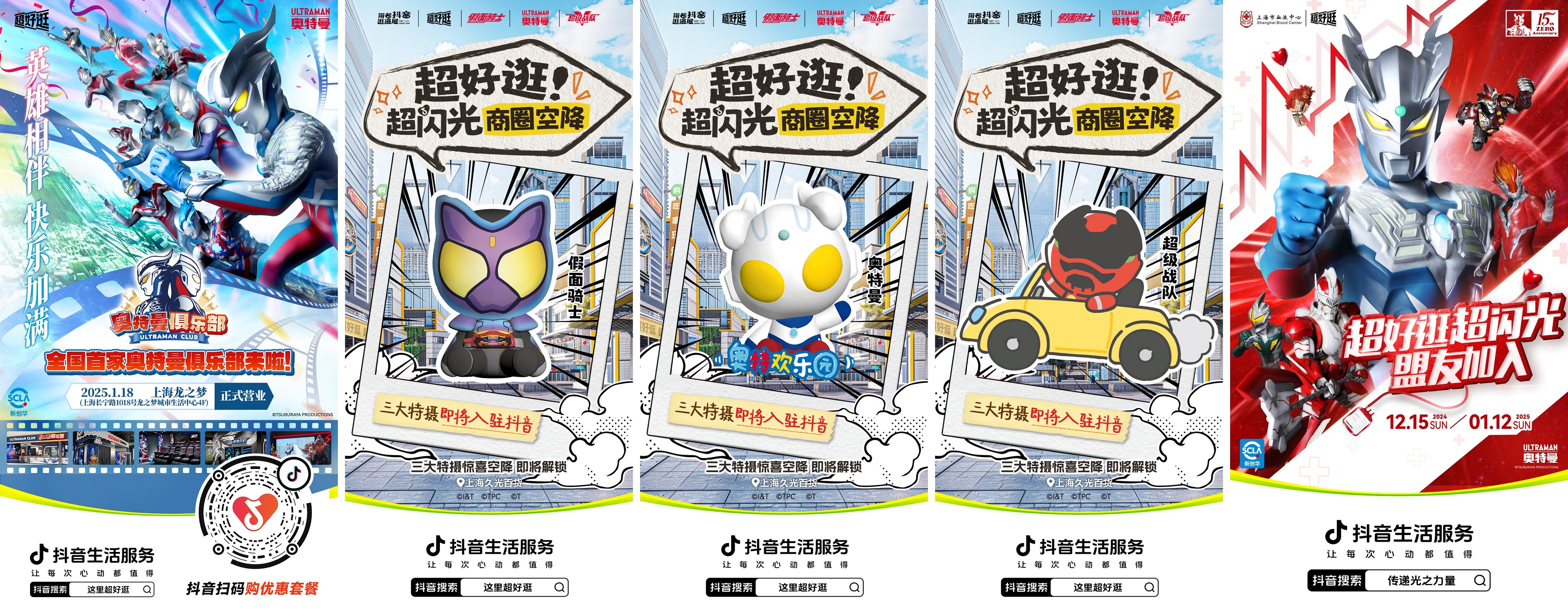 04.IP聯(lián)名煥新商圈,潮流打卡燃動商圈好生意 市井繁華,煙火人間,走進一條街,讀懂一座城。一條百逛不厭的街總是多元共生的,“政星”組團喊你逛街之外,IP聯(lián)名也讓商圈煥然一新。抖音“超好逛”深度鏈接奧特曼、假面騎士、超級戰(zhàn)隊三大IP,聯(lián)名定制貼紙、冰箱貼、購物袋等文創(chuàng)衍生品,引發(fā)粉絲站外自來水打卡。隨著三大特攝入駐抖音,熱點#假面騎士入駐抖音 、#超級戰(zhàn)隊入駐抖音 紛紛登上抖音全國熱榜Top持續(xù)吸引粉絲關注。抖音超好逛作為「超好逛超閃光盟友」攜手上海市血液中心助力無償獻血公益,為上海兒童醫(yī)院帶來冬日溫暖 。抖音生活服務還將與奧特曼IP繼續(xù)合作,1月18日奧特曼俱樂部在上海首店的開業(yè),令人倍感期待。
