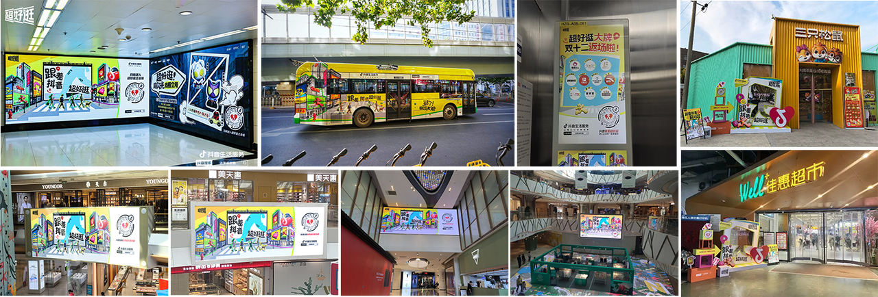 此外,抖音“超好逛”在大街小巷拉滿購物氛圍,上海、杭州、武漢、鄭州等7城15+商圈大屏上刊,全面“霸屏”釋放活動聲量 ,14+零售頭客主題物料入店,通過創(chuàng)意陳列和互動體驗吸引消費者,提升購物興趣;結合促銷活動,有效促進線下交易增長,為商家?guī)順I(yè)績提升。