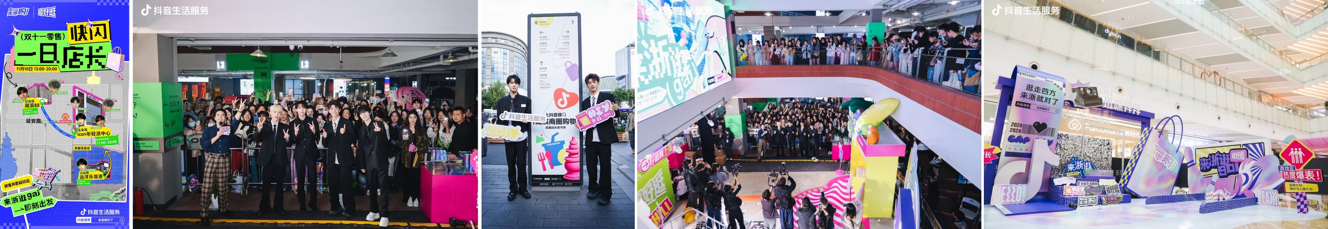 以“逛gai”為發(fā)力點,抖音生活服務打造“來浙逛gai”消費新場景。四位超人氣「一日店長」進駐杭州遠洋樂堤港、湖濱88、ICON年輕派中心三大潮流商圈,以“線下新奇體驗+線上福利轟炸”吸引來往行人駐足打卡,引爆線上和線下熱度。