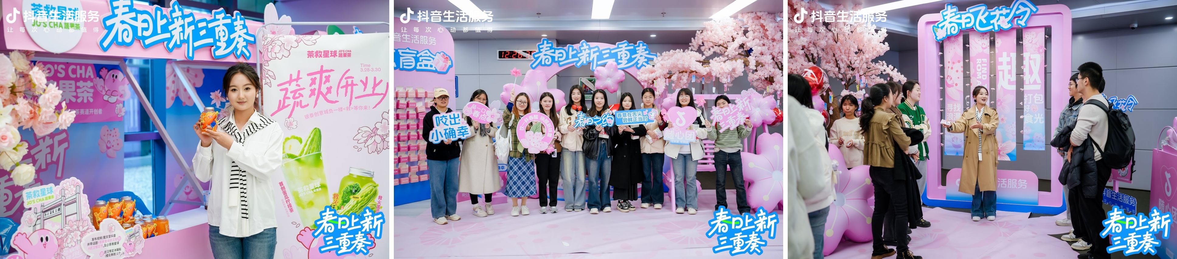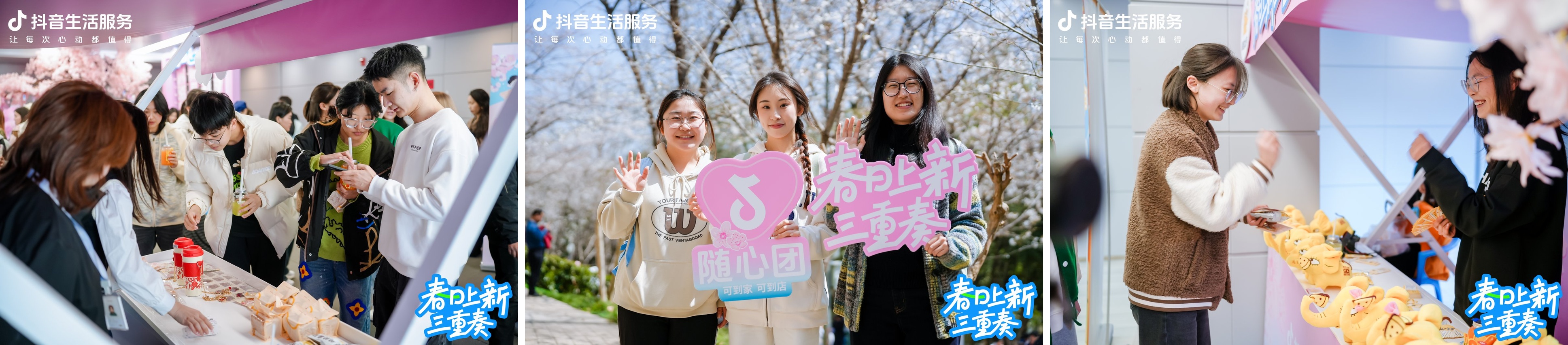 玉蘭剛落,櫻花正盛,大學(xué)生們?cè)诂F(xiàn)場(chǎng)對(duì)答春日飛花令、抽取春日盲盒,記錄春日活力分享在抖音,“一場(chǎng)市集嘗遍多家新品,這種好事,明年春天可以再有嗎”!