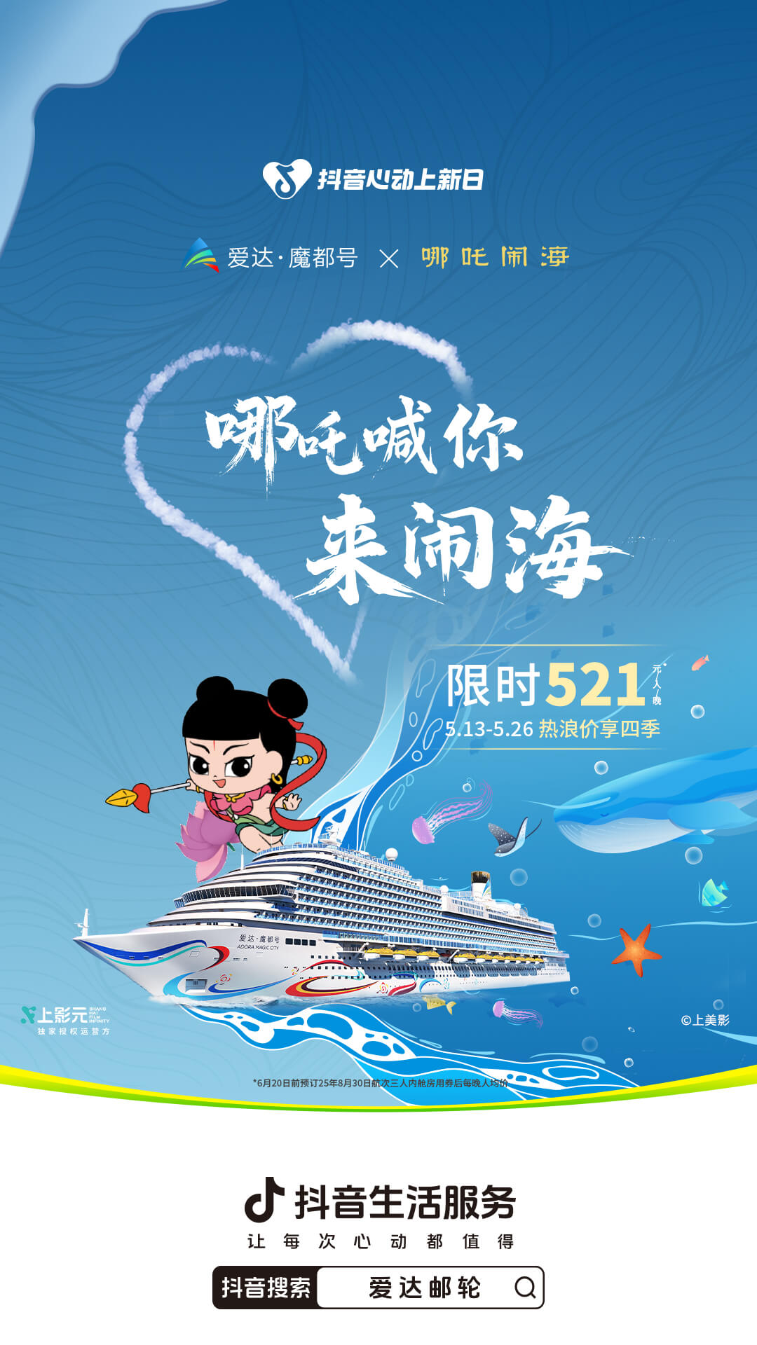 在暑期出游旺季即將到來(lái)之際,愛(ài)達(dá)郵輪與經(jīng)典動(dòng)畫“哪吒鬧海”聯(lián)名,借助「抖音心動(dòng)上新日」的力量,為廣大用戶打造了一場(chǎng)海上奇趣之旅。通過(guò)推出抖音心動(dòng)上新日獨(dú)家優(yōu)惠通兌券包,創(chuàng)新采用雙城雙船實(shí)景直播模式,將國(guó)民對(duì)哪吒的童年記憶與對(duì)海洋的向往,轉(zhuǎn)化為可體驗(yàn)的沉浸郵輪行程。借助愛(ài)達(dá)郵輪與哪吒鬧海“國(guó)民文化符號(hào)”的深度綁定,以“郵輪+國(guó)潮”跨界重塑度假場(chǎng)景,既滿足了用戶對(duì)文化認(rèn)同與親子歡聚的需求,又精準(zhǔn)撬動(dòng)了年中旅游消費(fèi)市場(chǎng)。