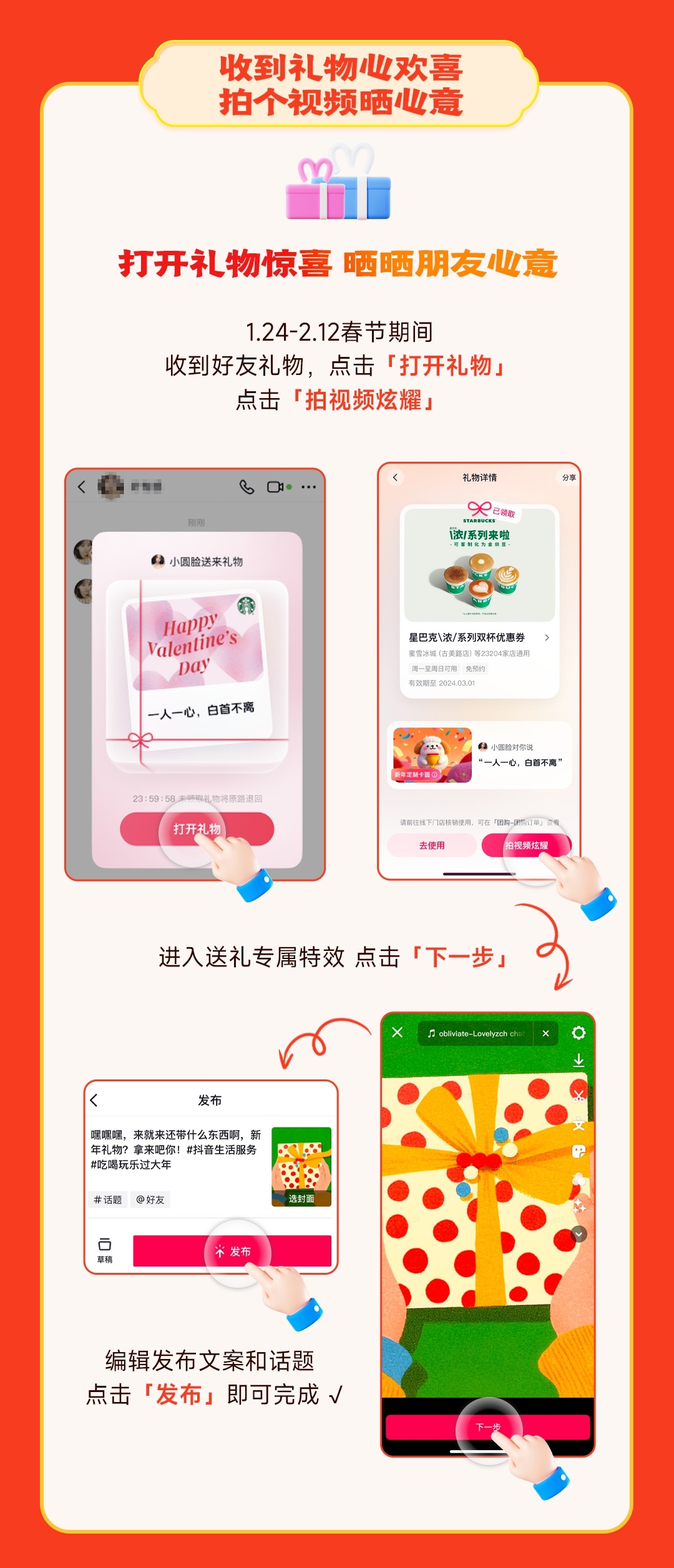 今年,抖音生活服務(wù)更是全面升級了禮贈功能,從送禮和收禮雙方提升體驗,讓春節(jié)送禮不再流于形式,更具樂趣與溫情!