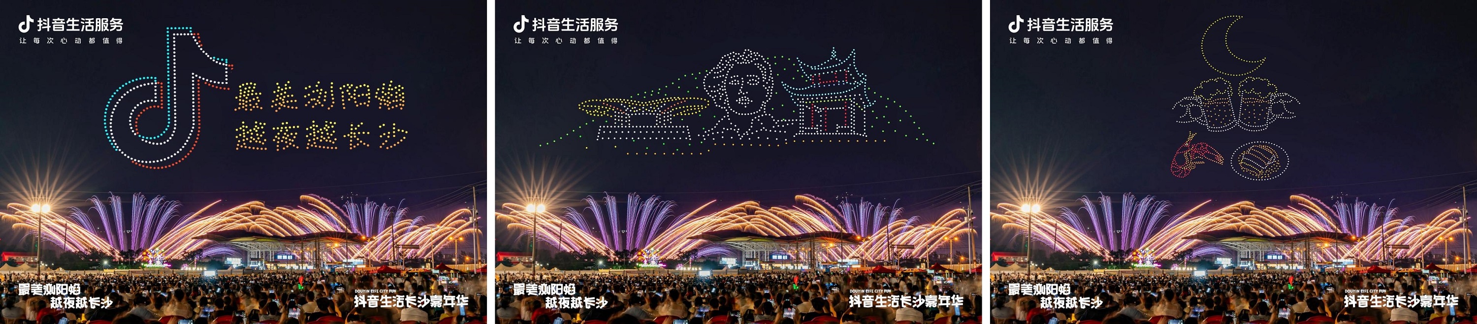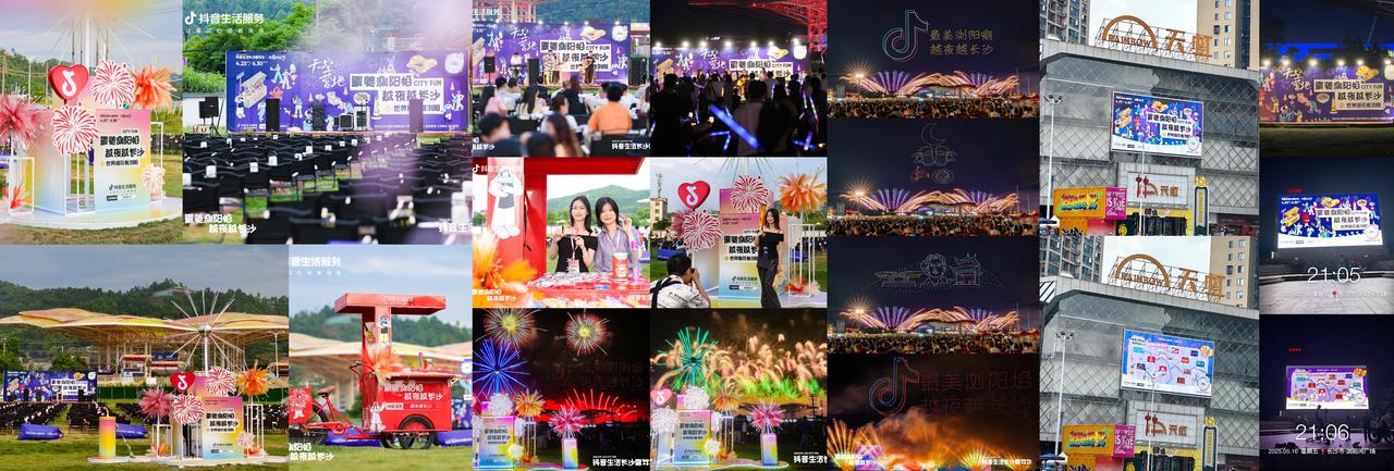 在素有“世界煙花之都”之稱的瀏陽,抖音生活服務(wù)聯(lián)動瀏陽政府、大吉煙花、天空營地,為本次活動進行了IP定制的沉浸式煙花秀,成功引爆了一波湖南夜游熱潮。五一假期在瀏陽上空驚喜點亮“最美瀏陽焰,越夜越長沙”星空標語,5月17日在瀏陽天空劇院上演抖音專屬煙花秀和無人機秀,多架無人機同步編隊演繹夜長沙經(jīng)典場景:岳麓山愛晚亭的飛檐輪廓、毛主席雕像的剪影與瀏陽天空劇院的絕美穹頂交替閃現(xiàn);夜色漸深時,舉著鉗子的小龍蝦、瀏陽的蒸菜與冒著氣泡的啤酒杯互相捧杯,將“瀏陽焰”“夜長沙”兩大主題向數(shù)十萬觀眾展現(xiàn)。