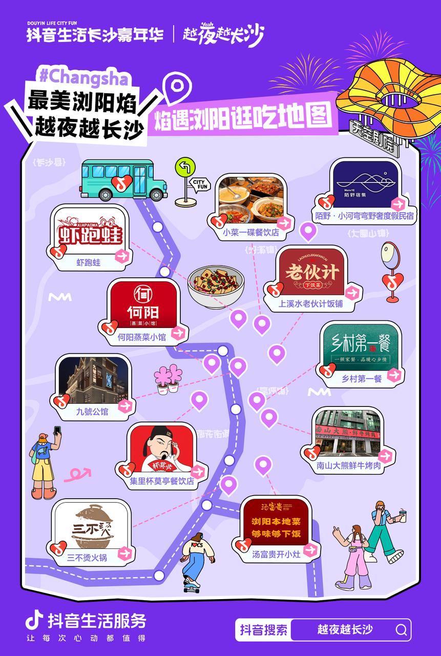 除此之外,活動還驚喜上線「焰遇瀏陽逛吃地圖」,為前來觀賞煙花秀的游客們附贈詳細逛吃攻略,“安利”必打卡的地道小店,引發(fā)網(wǎng)友好評。