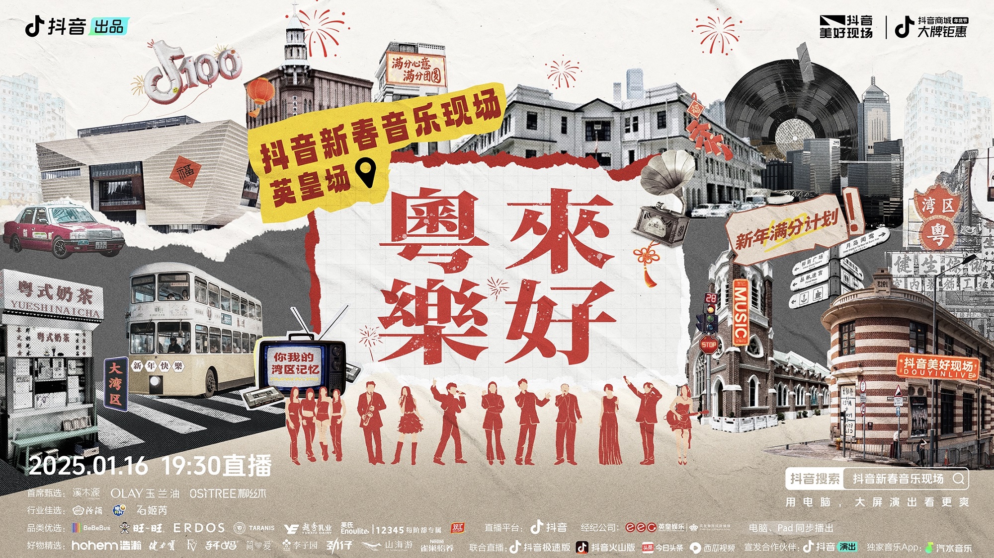 1月16日晚19:30,新年滿分計(jì)劃—「粵來樂好」抖音新春音樂現(xiàn)場(chǎng)將陪你在熟悉的旋律中重溫往昔歲月,在新穎的演繹里感受港樂的無限魅力,讓我們一起回到那個(gè)充滿夢(mèng)想與希望的年代,并且重整行囊,開啟新的旅程。