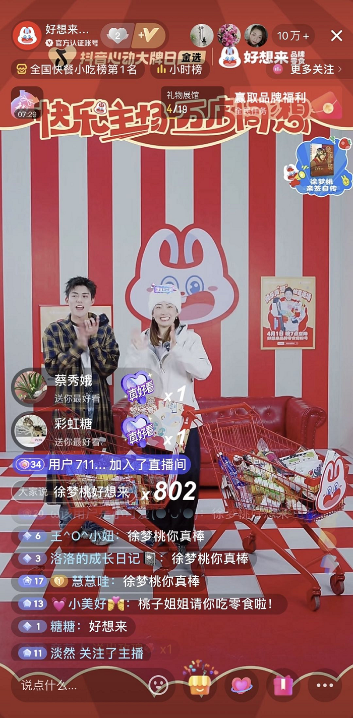 當(dāng)10000家門店的燈光同時點亮,好想來選擇以一場“快樂主場 萬店同“想””主題直播回應(yīng)消費者期待。整體布景以摩天輪為核心視覺符號,構(gòu)建了充滿夢幻感的“零食游樂園”,將品牌“快樂、童真、分享”的基因具象化為可感知的消費儀式。直播間以“感恩回饋”為情感紐帶,不僅推出了30萬份0.1元零食福袋秒殺、超值全品類代金券等年度重磅級福利,更是聯(lián)動中國首位雪上項目全滿貫運動員徐夢桃,以“品牌大師推薦官”身份空降,憑借系列趣味互動環(huán)節(jié),拉滿互動人氣氛圍。整場直播以高密度福利和沉浸式體驗引爆消費熱潮,創(chuàng)下零食行業(yè)品牌單日支付峰值、官方直播間成交峰值等多項紀錄,用真誠回饋與用戶共同書寫了“萬店同慶”的狂歡篇章。