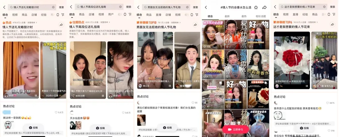 早在2月8日,#情人節(jié)送禮攻略倒計時、#情人節(jié)高段位送禮指南等話題就因精準(zhǔn)切中在節(jié)日前期籌備禮物的迫切需求,迅速登上了熱點榜單,吸引了眾多用戶在話題下暢所欲言,分享送禮心得、創(chuàng)意靈感以及美好期待。
