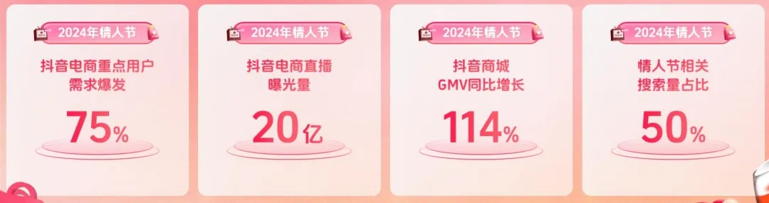 如2024年情人節(jié),抖音電商重點用戶需求爆發(fā)了75%,直播曝光量達(dá)20億,商城GMV同比增長114%,情人節(jié)相關(guān)搜索量占比達(dá)50%。今年用戶依然高度活躍,消費(fèi)心智更為成熟。這充分證明了抖音電商擁有巨大的生意空間和增長潛力。