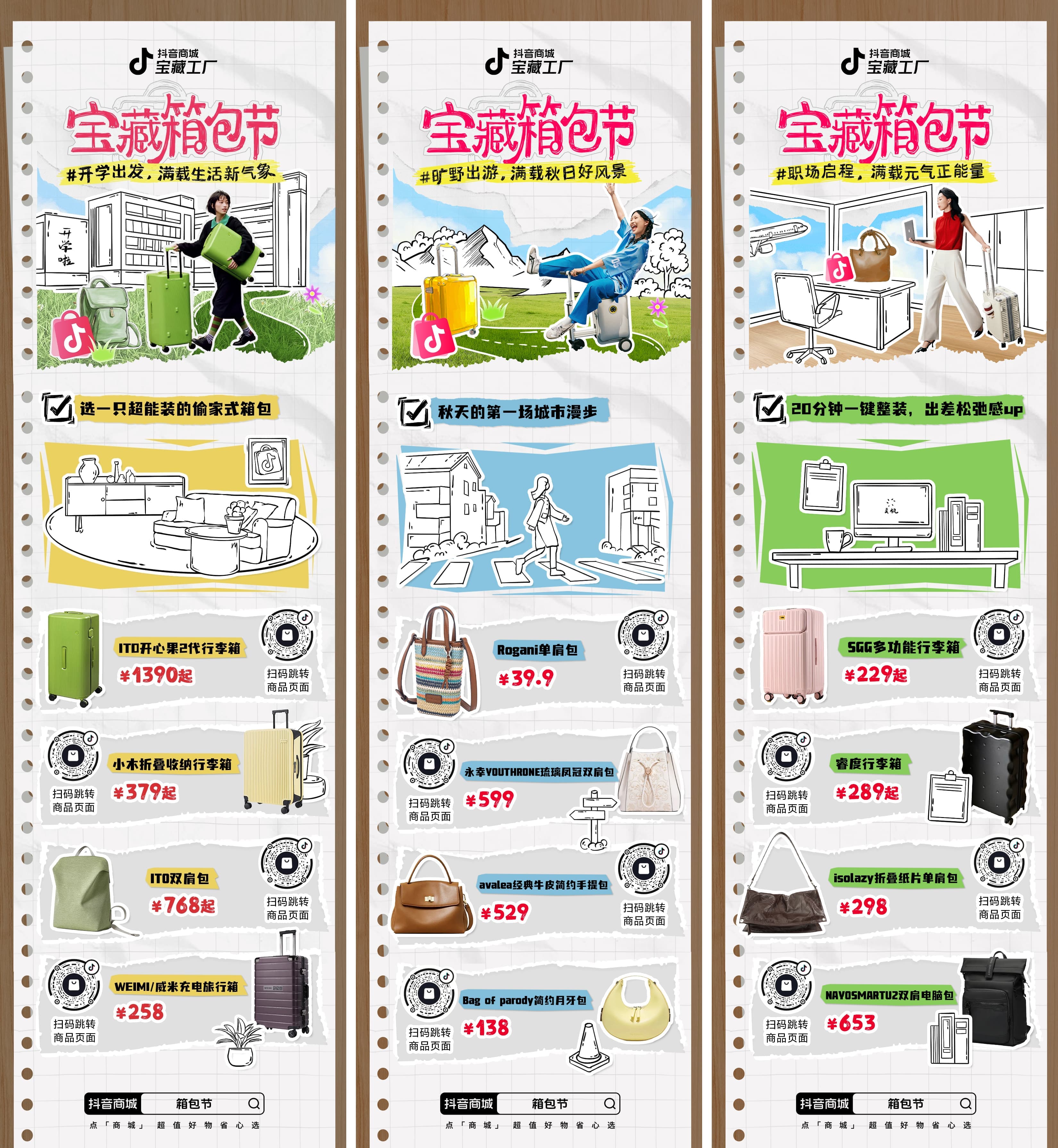 為了滿足出游開學(xué)季大眾的箱包消費(fèi)需求,8月11日至8月24日,抖音商城推出「寶藏工廠|寶藏箱包節(jié)」主題活動(dòng),攜手廣州獅嶺、河北白溝、江西新干、浙江平湖等箱包產(chǎn)業(yè)帶寶藏工廠,為大家?guī)碡S富優(yōu)質(zhì)的源頭箱包好物,為便捷出行提供更優(yōu)的箱包解決方案,引領(lǐng)箱包消費(fèi)新趨勢(shì)。