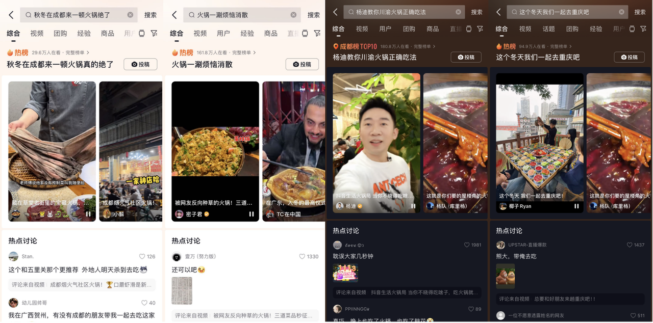 【抖音生活火鍋季】還打造了#秋冬在成都來一頓火鍋絕了、#火鍋一涮煩惱消散、#楊迪教你川渝火鍋正確吃法、#這個冬天我們一起去重慶吧 多個火鍋話題熱點,持續(xù)引爆活動氛圍,累計收獲1.1億曝光,話題下的短視頻內(nèi)容更是給商家?guī)?29萬的GMV增長。