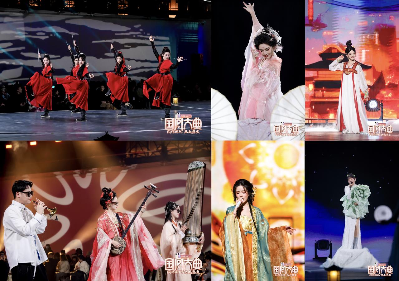 國風(fēng)美煥夜舞臺,由峨眉派女子功夫團開場,她們翻飛跳躍,盡顯剛?cè)岵?,瞬間點燃了全場的熱情。“國風(fēng)主持人”房琪kiki溫暖有感染力的聲音串聯(lián)全場,為每一個表演賦予解讀。許佳琪在《春不晚》細(xì)膩婉轉(zhuǎn)的旋律中,以一席粉黛衣裝搭配柔美紙傘的舞姿,繪就一卷氤氳著煙雨的水墨畫。“國風(fēng)音樂人”@桂梓三弦與中阮 @盧柔伊 @嗩吶小南聯(lián)袂演繹國風(fēng)樂曲《寄明月》,弦線剔透、管樂婉轉(zhuǎn),古老樂器碰撞出生動旋律,演繹出屬于年輕人的流行節(jié)奏。駱文博帶來舞劇《大名狄公》選段《甄兒》,整個舞蹈編排更融合了中國古典舞圓潤流暢與現(xiàn)代舞的靈動多變,舞者通過生動的姿態(tài)動作和面部表情,傳達(dá)出角色的內(nèi)心世界和情感變化。跌宕起伏的劇情,輔以如夢如幻的舞美設(shè)計和燈光音效,讓觀眾仿佛穿越時空,回到了大唐盛世。陳卓璇全新演繹《壁上觀》更是精彩斐然,清澈透亮的嗓音勾勒出一種古今重疊的故事感,千年歷史的厚重感和文化魅力撲面而來。壓軸出場的薩頂頂,用神秘空靈的《萬物生》和極限高音直擊心靈的《左手指月》兩首代表作,刻畫了生命和禪意帶來的文化韻味悠長,讓演出完美收官落幕。