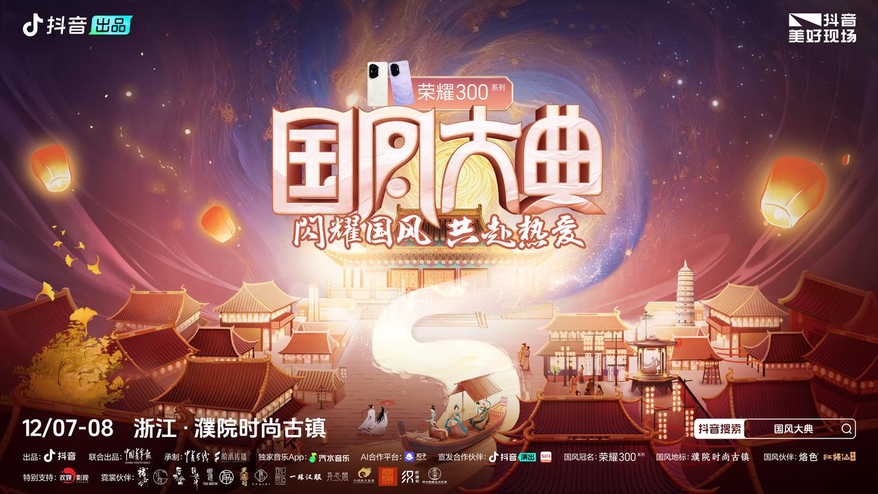 傳承華夏風(fēng)韻,繪就國風(fēng)新篇。近日,由抖音出品、中國青年報聯(lián)合出品,中青在線承辦的「2024國風(fēng)大典」圓滿收官。活動攜手冠名品牌榮耀300系列、國風(fēng)地標(biāo)濮院時尚古鎮(zhèn)、國風(fēng)伙伴LADORECOLORS烙色彩妝、新中式茶酒品牌–紅樓仙茶酒和15家國內(nèi)頂尖華服商家、30多位明星嘉賓、150多位國風(fēng)達(dá)人一起,將千年文化底蘊與現(xiàn)代審美巧妙融合,為觀眾帶來了一場震撼心靈的東方美學(xué)洗禮。國風(fēng)大典不僅對國風(fēng)文化進行了創(chuàng)新詮釋,以驚艷絕絕的視覺呈現(xiàn)最終斬獲全網(wǎng)熱搜72個,更激發(fā)了當(dāng)代青年對傳統(tǒng)文化的自豪感與歸屬感,讓國風(fēng)成為連接古今、跨越國界的橋梁。