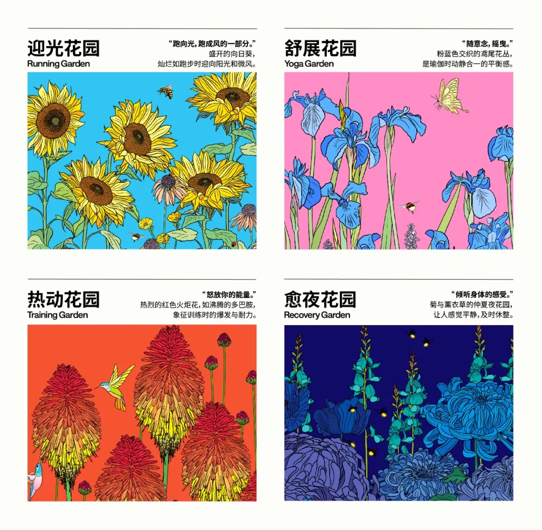 伴隨著報(bào)告的發(fā)布, lululemon正式開(kāi)啟今年的“一起好狀態(tài)”主題活動(dòng),率先吸引眾人目光的是與Graphic Rewilding共同呈現(xiàn)的“好狀態(tài)心展花園”。憑借其鮮明的色彩和豐富的寓意(不同的花卉分別代表瑜伽、跑步、訓(xùn)練和恢復(fù)),該藝術(shù)作品旨在邀請(qǐng)生活在都市中的人們動(dòng)一動(dòng),讓身心松動(dòng),感受自己內(nèi)心的花園。