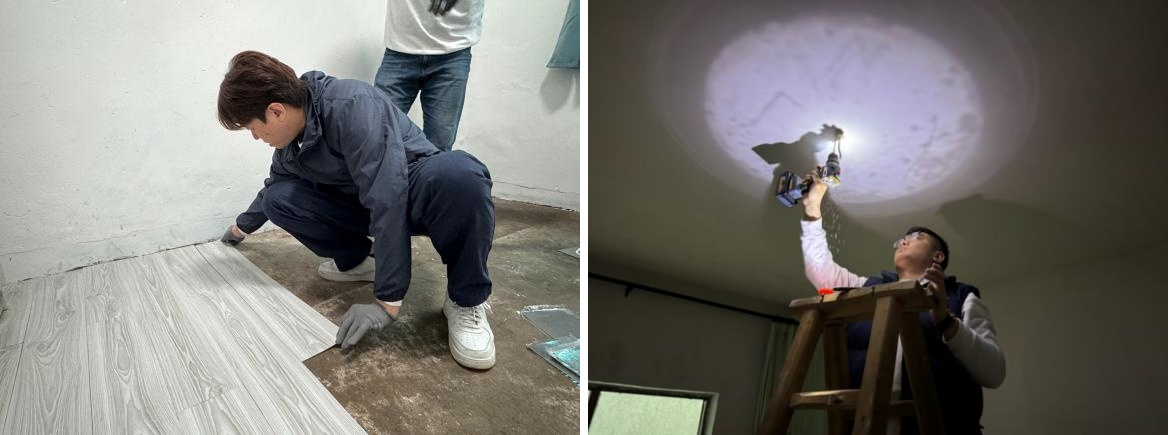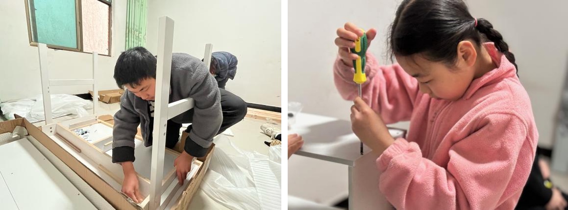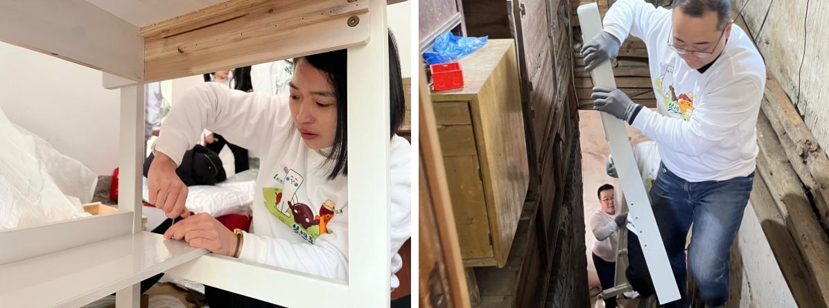 在精心籌備后,3月,我們帶著滿滿愛意的物資準(zhǔn)備就緒。我們購置了床、衣柜、書桌、書柜,家居用品等,根據(jù)每個困境家庭的需求,開展全方位的改造工作,為昏暗的房間重新粉刷墻壁,讓屋子明亮起來;整改雜亂危險的電路,保障生活安全;安裝墻板吊頂隔斷,合理規(guī)劃空間,只為給孩子們打造一個舒適的學(xué)習(xí)與生活環(huán)境。