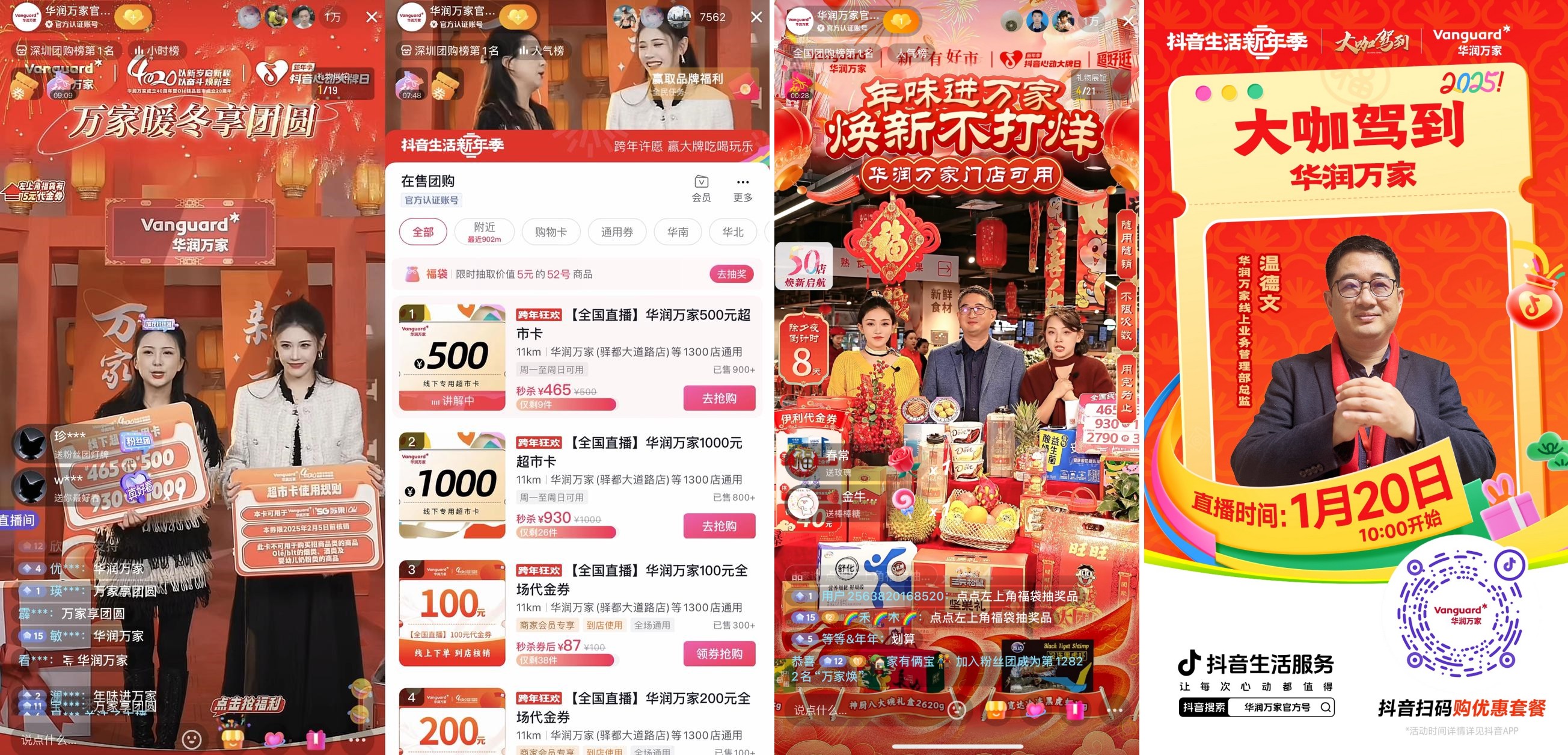 華潤(rùn)萬(wàn)家在一年一度的年貨熱門(mén)搶購(gòu)季,聯(lián)合「抖音心動(dòng)大牌日」為大家貼心推出“年味進(jìn)萬(wàn)家”主題活動(dòng),從12月20日至1月28日歷時(shí)一月之久,持續(xù)為大家放送超市購(gòu)物卡、品牌代金券以及直降單品等多重福利,旨在讓大家感受華潤(rùn)萬(wàn)家帶來(lái)的濃濃年味。值此新春佳節(jié)之際,借助「抖音心動(dòng)大牌日」的平臺(tái)優(yōu)勢(shì),華潤(rùn)萬(wàn)家創(chuàng)新性地采用了官方賬號(hào)+頭部高粉主播聯(lián)合直播模式,高頻次曝光活動(dòng)信息,深入觸達(dá)消費(fèi)者。在官方直播間,品牌推出了465元抵500元、930元抵1000元、87元抵100元等多面值購(gòu)物卡,讓顧客盡情囤貨,另外業(yè)務(wù)總監(jiān)也親臨直播間派送年貨福利,最終實(shí)現(xiàn)了專場(chǎng)直播GMV破5000萬(wàn)、榮登全國(guó)團(tuán)購(gòu)帶貨周榜TOP1的佳績(jī)。為了打造一場(chǎng)有品又有料的心動(dòng)年貨節(jié),華潤(rùn)萬(wàn)家還邀請(qǐng)了@玲爺、@歐文浩(有兒子版) 、@曲岑兮 、@湯神來(lái)了 、@天巍霸霸 、@大金小金·mini金 、陳陳晨 等站內(nèi)人氣達(dá)人博主展開(kāi)全天候、全時(shí)段直播,共同創(chuàng)下了一個(gè)個(gè)直播高光時(shí)刻……華潤(rùn)萬(wàn)家的開(kāi)年系列營(yíng)銷玩法,不僅讓國(guó)人能夠歡歡喜喜過(guò)大年,還提升了諸多年貨品牌的知名度和美譽(yù)度,有效帶動(dòng)了交易轉(zhuǎn)化和銷量增長(zhǎng)。