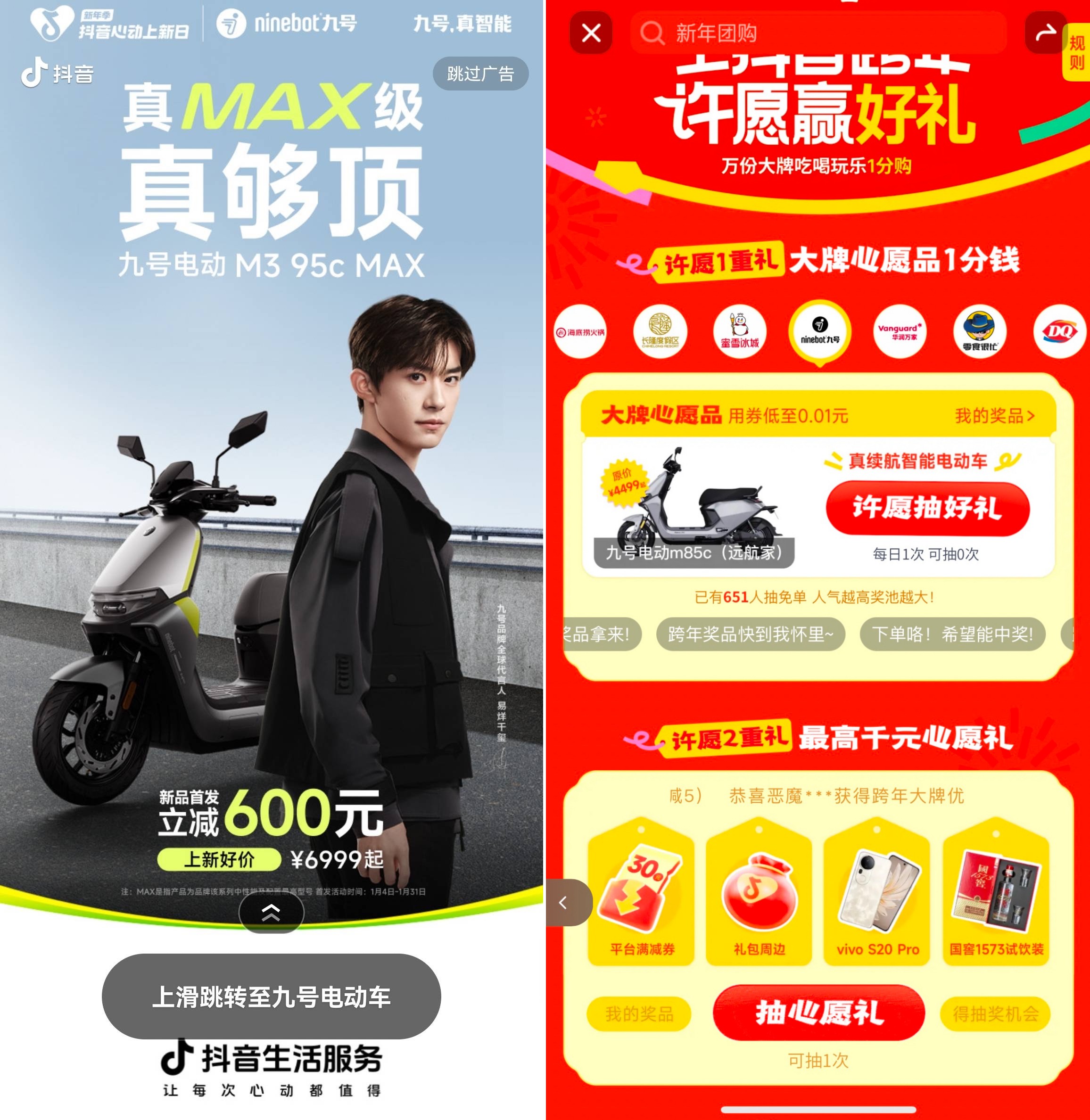 九號(hào)電動(dòng)品牌于新年之際推出三款全新“標(biāo)桿力作”,聯(lián)動(dòng)「抖音心動(dòng)上新日」攜手推出“高能進(jìn)化,駕馭新生”主題活動(dòng),原價(jià)6999元的熱門(mén)電動(dòng)車型,現(xiàn)以6499元的特惠價(jià)格即可“騎回家”,并疊加六期免息省心優(yōu)惠,主打讓大家“安心騎新車”。在品牌新品發(fā)布會(huì)的高能直播環(huán)節(jié),品牌特邀總監(jiān)喬仔為大家詳細(xì)解讀新品的技術(shù)配置與卓越性能,引得網(wǎng)友直呼“九號(hào)電動(dòng)還是太全面了”。除此之外,九號(hào)電動(dòng)還通過(guò)易烊千璽新品大片發(fā)布、線下商圈滾動(dòng)大屏高頻曝光、站內(nèi)興趣垂類圈層體驗(yàn)評(píng)測(cè)等動(dòng)作,充分借勢(shì)明星達(dá)人的傳播影響力,從產(chǎn)品設(shè)計(jì)、智能、性能、騎感等多角度,全方位詮釋產(chǎn)品獨(dú)特賣點(diǎn),鏈接用戶端情緒價(jià)值,這一系列舉措不僅助力九號(hào)電動(dòng)在2025開(kāi)年之際實(shí)現(xiàn)了聲量與銷量的雙爆發(fā),進(jìn)一步夯實(shí)心動(dòng)上新日“新奇體驗(yàn)搶先享”的消費(fèi)心智,還鞏固了品牌在電自和電摩車圈的行業(yè)地位。