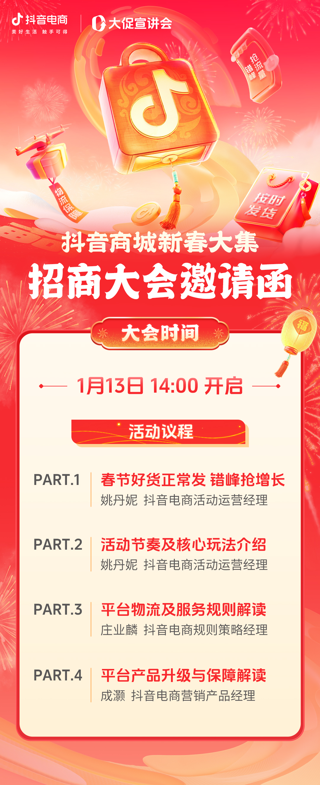 今年抖音電商也有春節(jié)大促?鎖定1月13日「抖音商城新春大集」招商大會