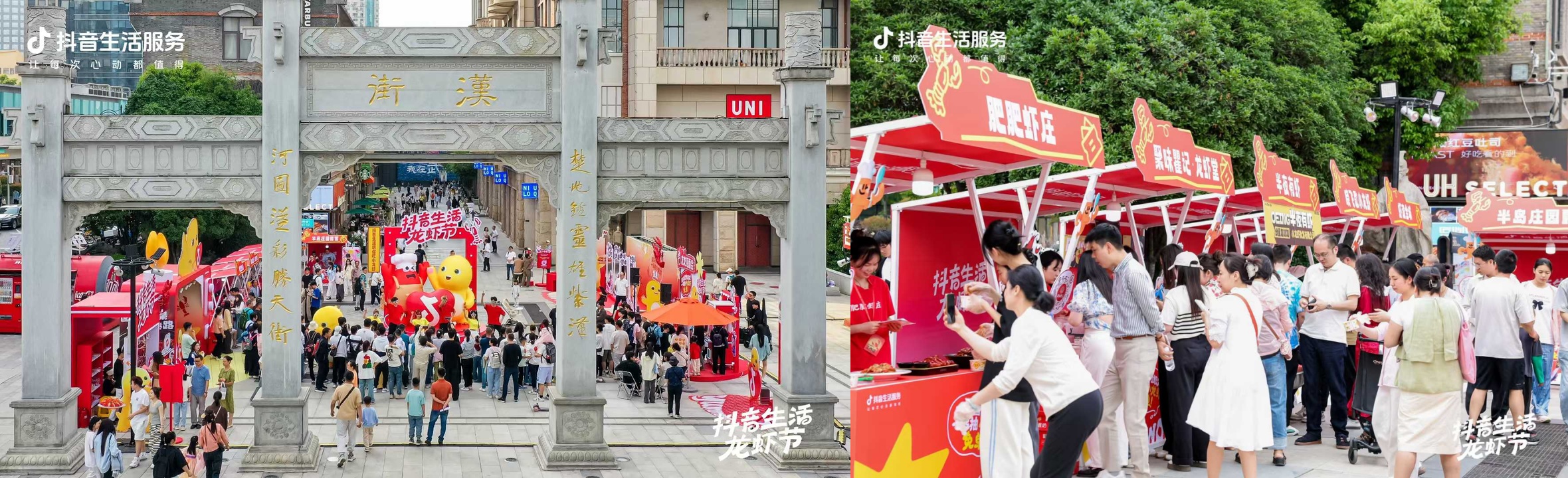 當(dāng)然,與抖音生活龍蝦節(jié)共舞的,遠(yuǎn)不止這兩家品牌。在全國,超過12個(gè)小龍蝦頭部品牌與IP深度合作,共同構(gòu)建線下主題門店;在寧波、武漢等地,龍蝦節(jié)合作商家攜IP登陸核心商圈大屏、向全城滾動(dòng)展示。持續(xù)增加IP和商家影響力的同時(shí),“吃小龍蝦上抖音團(tuán)購”心智,也被進(jìn)一步增強(qiáng)。