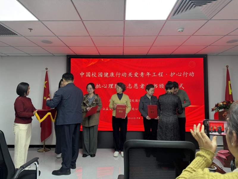培訓(xùn)結(jié)束后,徐澤源主任為參訓(xùn)志愿者頒發(fā)了關(guān)愛青年工程“護心行動”公益心理服務(wù)志愿者榮譽證書。