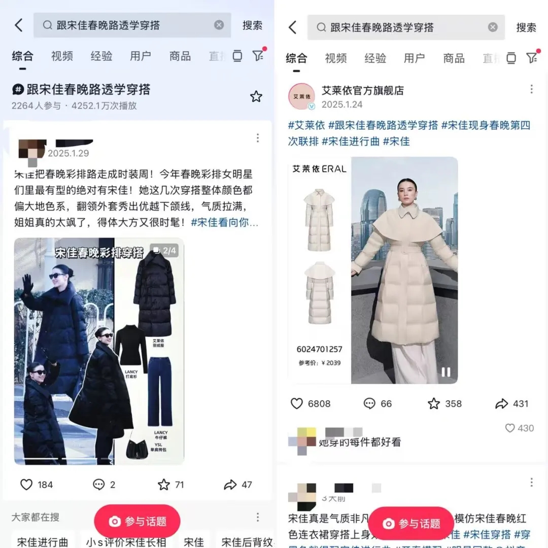 可以看出,借助春晚這一國民舞臺,明星同款的曝光效應(yīng)得以放大,吸引了更多用戶被種草相關(guān)產(chǎn)品。