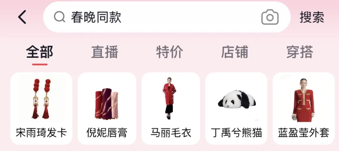 在這個過程中,用戶不僅能在抖音站內(nèi)搜到晚會同款的相關(guān)信息,還可以在觀看春晚的同時就拿下同款產(chǎn)品,實現(xiàn)“熱點-搜索-轉(zhuǎn)化”鏈路的高效流轉(zhuǎn)。