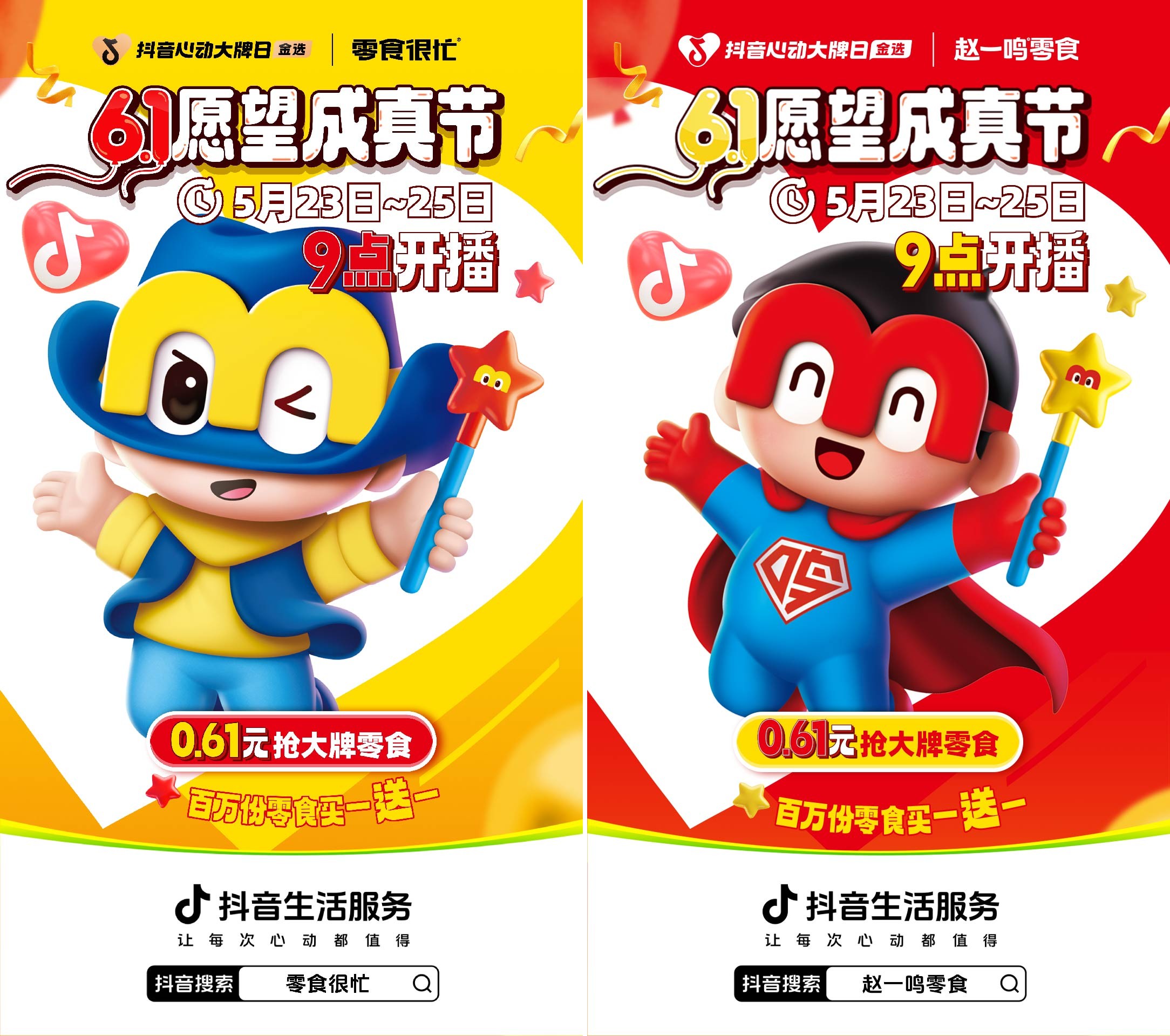 鳴鳴很忙集團(tuán)雙品牌零食很忙、趙一鳴攜手「抖音心動(dòng)大牌日」,于5月20日至6月2日,正式啟動(dòng)“61愿望成真節(jié)”盛典,以“人人皆可許愿,共享童趣快樂(lè)”為情感支點(diǎn),重磅推出哆啦A夢(mèng)、蠟筆小新、旺仔、小豬佩奇等五大動(dòng)漫IP聯(lián)名定制零食,抖音獨(dú)家首發(fā),引爆搶購(gòu)熱潮。品牌直播間限時(shí)加碼“百萬(wàn)份零食買一送一”年度鉅惠,疊加“雙品牌連線PK互動(dòng)”“心愿拍賣會(huì)”等互動(dòng)玩法,打造沉浸式輕綜藝直播盛況;更有超頭明星達(dá)人輪番助陣帶貨,借助明星流量持續(xù)加熱“愿望成真節(jié)”話題熱度。品牌此次以“熱門IP聯(lián)名+綜藝化直播場(chǎng)景+全民心愿社交”創(chuàng)新組合,精準(zhǔn)撬動(dòng)全年齡段用戶情感共鳴,既通過(guò)“買一送一”激活消費(fèi)勢(shì)能,又借勢(shì)IP情懷與明星效應(yīng)實(shí)現(xiàn)目標(biāo)用戶破圈滲透,助推兒童節(jié)檔期零食消費(fèi)浪潮全域爆發(fā)。