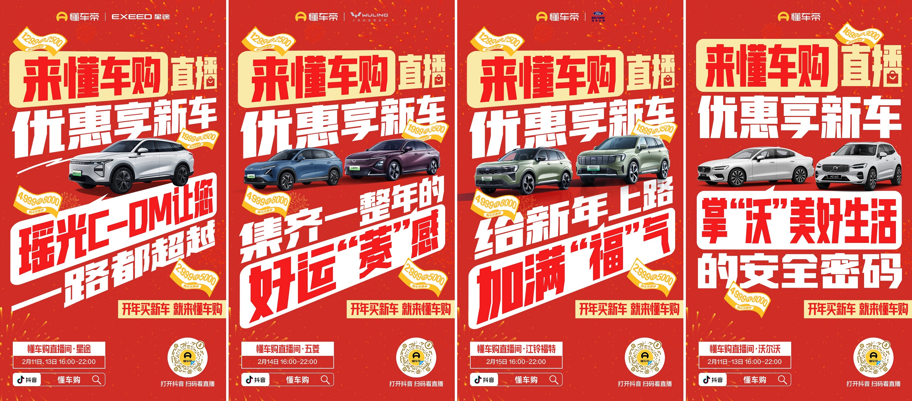 2月11日-15日,每天16:00-22:00,鎖定抖音賬號-懂車購聚燃開門紅直播間,一起把愛車開回家!