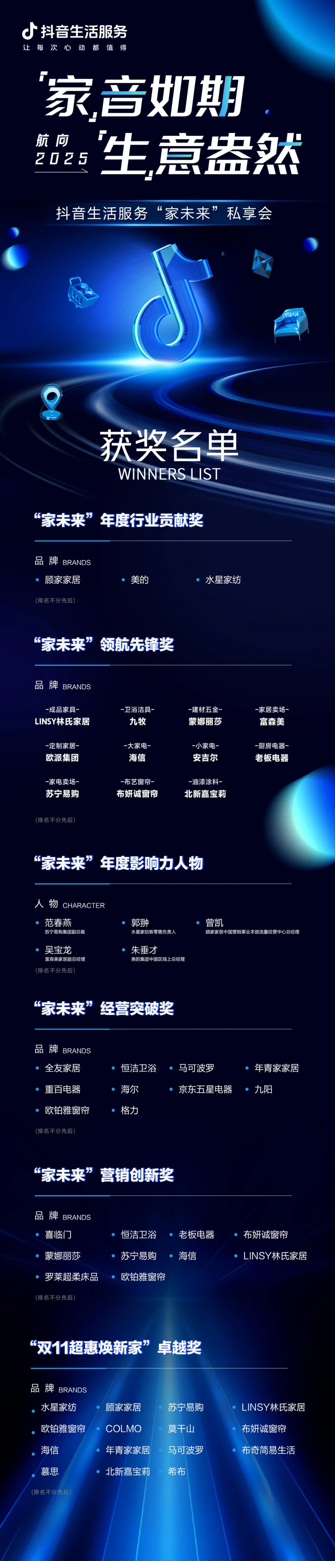 期待在2025年的行業(yè)舞臺上,抖音生活服務(wù)與行業(yè)品牌更加緊密合作,讓過億頭部玩家不斷涌現(xiàn),探索更加創(chuàng)新高效的經(jīng)營之道,打開家行業(yè)發(fā)展新路徑。