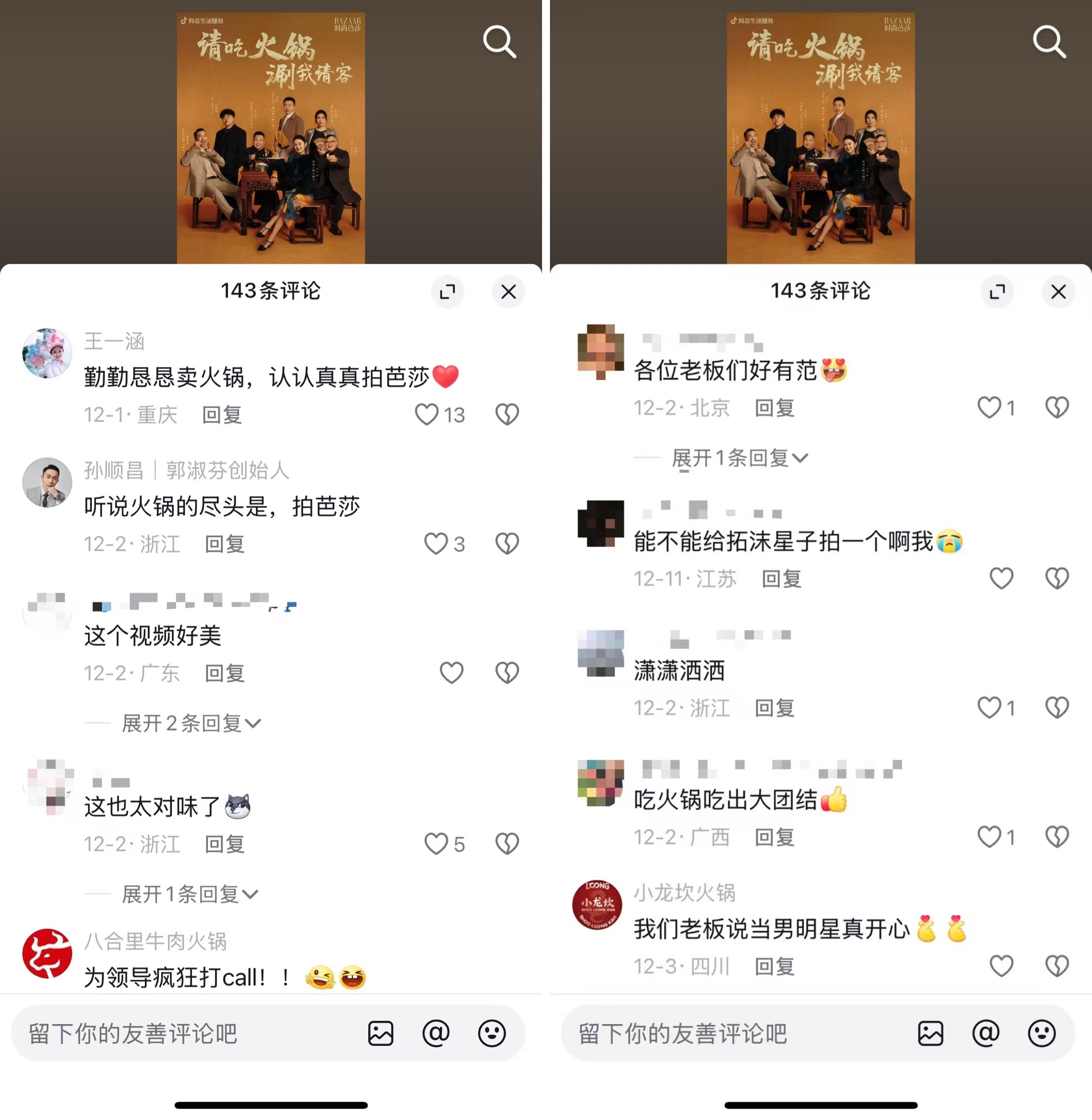 這一合作,不僅引發(fā)了時(shí)尚圈層的熱烈討論,而且在幾位火鍋創(chuàng)始人的抖音評(píng)論區(qū),也都吸引了很多用戶前來(lái)打卡。這種升維打法,依然是基于對(duì)火鍋人群的洞察,因?yàn)闀r(shí)尚受眾與火鍋品類的受眾不僅不沖突,還存在高重合度。所謂的反差感,是源于新體驗(yàn)、新認(rèn)知,反差,但并不違和。
