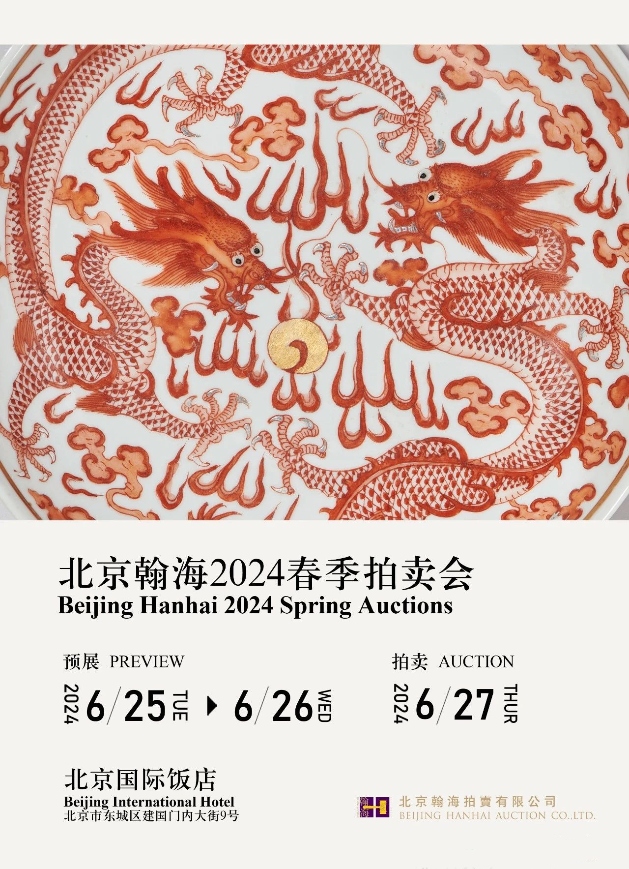 北京翰海2024春拍 預(yù)展時(shí)間 6月25日 上午9:00-晚上8:00 6月26日 上午9:00-晚上6:00 預(yù)展地點(diǎn) 北京國(guó)際飯店主樓 國(guó)際廳、陽(yáng)光廳: 中國(guó)近現(xiàn)代書(shū)畫(huà)、中國(guó)古代書(shū)畫(huà) 彩虹廳: 中國(guó)古董珍玩 拍賣場(chǎng)次 中國(guó)近現(xiàn)代書(shū)畫(huà) 6月27日09:30 北京國(guó)際飯店主樓 國(guó)際廳A廳 中國(guó)古代書(shū)畫(huà) 6月27日14:30 北京國(guó)際飯店主樓 國(guó)際廳A廳 中國(guó)古董珍玩 6月27日13:30 北京國(guó)際飯店主樓 國(guó)際廳B廳 關(guān)于北京翰海拍賣 北京翰海拍賣有限公司成立于1994年,是國(guó)內(nèi)成立較早的拍賣企業(yè)之一,以從事文物藝術(shù)品拍賣經(jīng)營(yíng)活動(dòng)為主,旨在通過(guò)拍賣活動(dòng),為業(yè)界提供高層次、高品質(zhì)的藝術(shù)品交易平臺(tái)和文化交流空間,弘揚(yáng)中華民族文化。 |