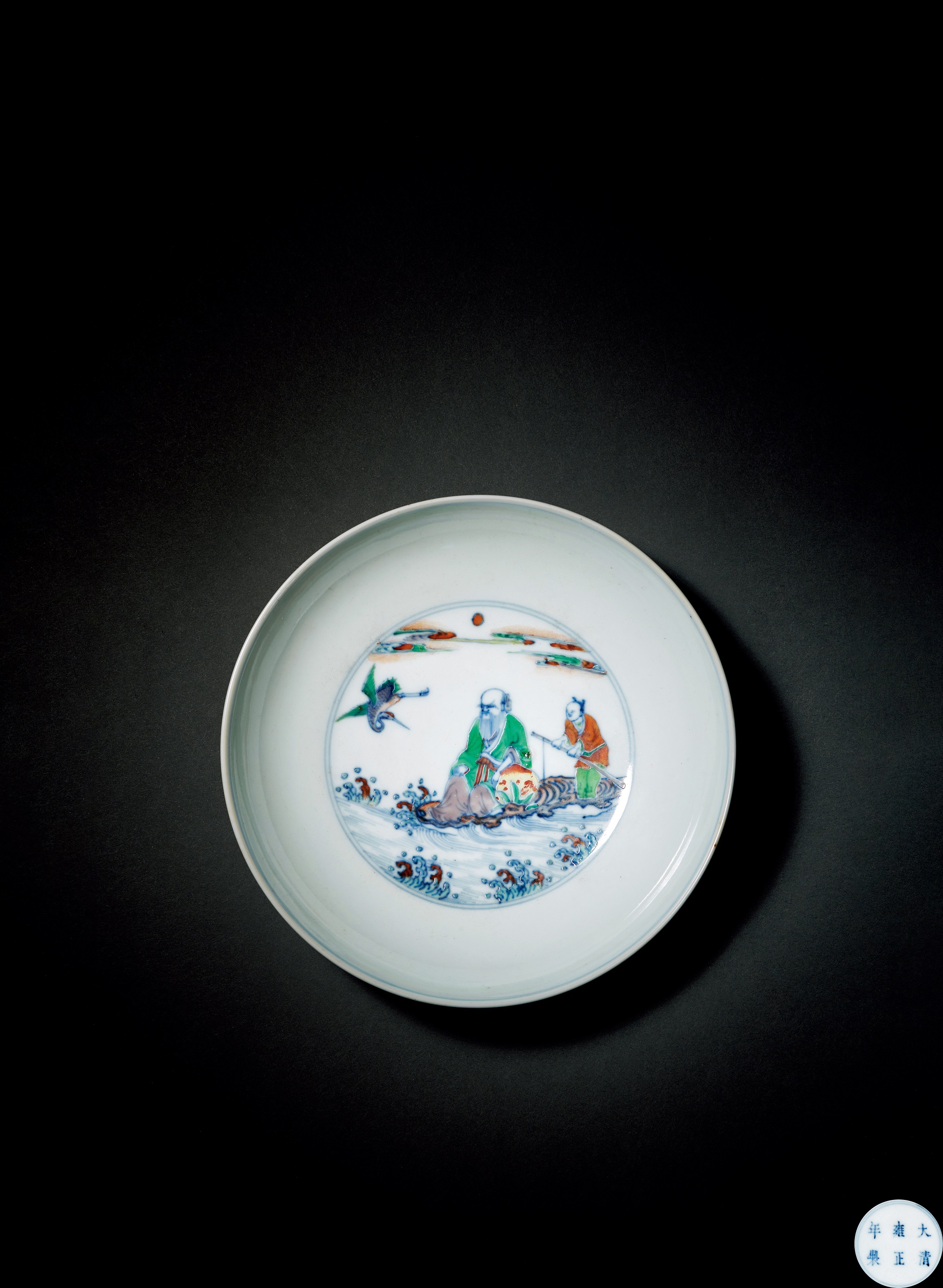 Lot 2234 清雍正 斗彩仙人乘槎紋盤(pán) 尺寸:直徑 15.8cm “大清雍正年制”楷書(shū)款 估價(jià):RMB 150,000-200,000 雍窯斗彩素以彩料清雅、繪工精巧而冠絕一時(shí),正如《飲流齋說(shuō)瓷》所評(píng):“(斗彩)康雍至精,若人物、若花卉、若鳥(niǎo)獸,均異采發(fā)越、清雅可愛(ài)……足為清供雅品,彌可寶貴也。”類似畫(huà)意還可見(jiàn)張騫乘槎、八仙祝壽、海屋添籌、壽桃靈芝等祝壽紋飾,為康熙、雍正兩朝宮廷壽誕流行題材。 本器玲瓏雋秀,構(gòu)圖別具一格,將畫(huà)意與吉祥寓意巧妙地結(jié)合起來(lái),毫無(wú)牽強(qiáng)之感,保存完好,為難得的雍正官窯斗彩器之精品佳作。