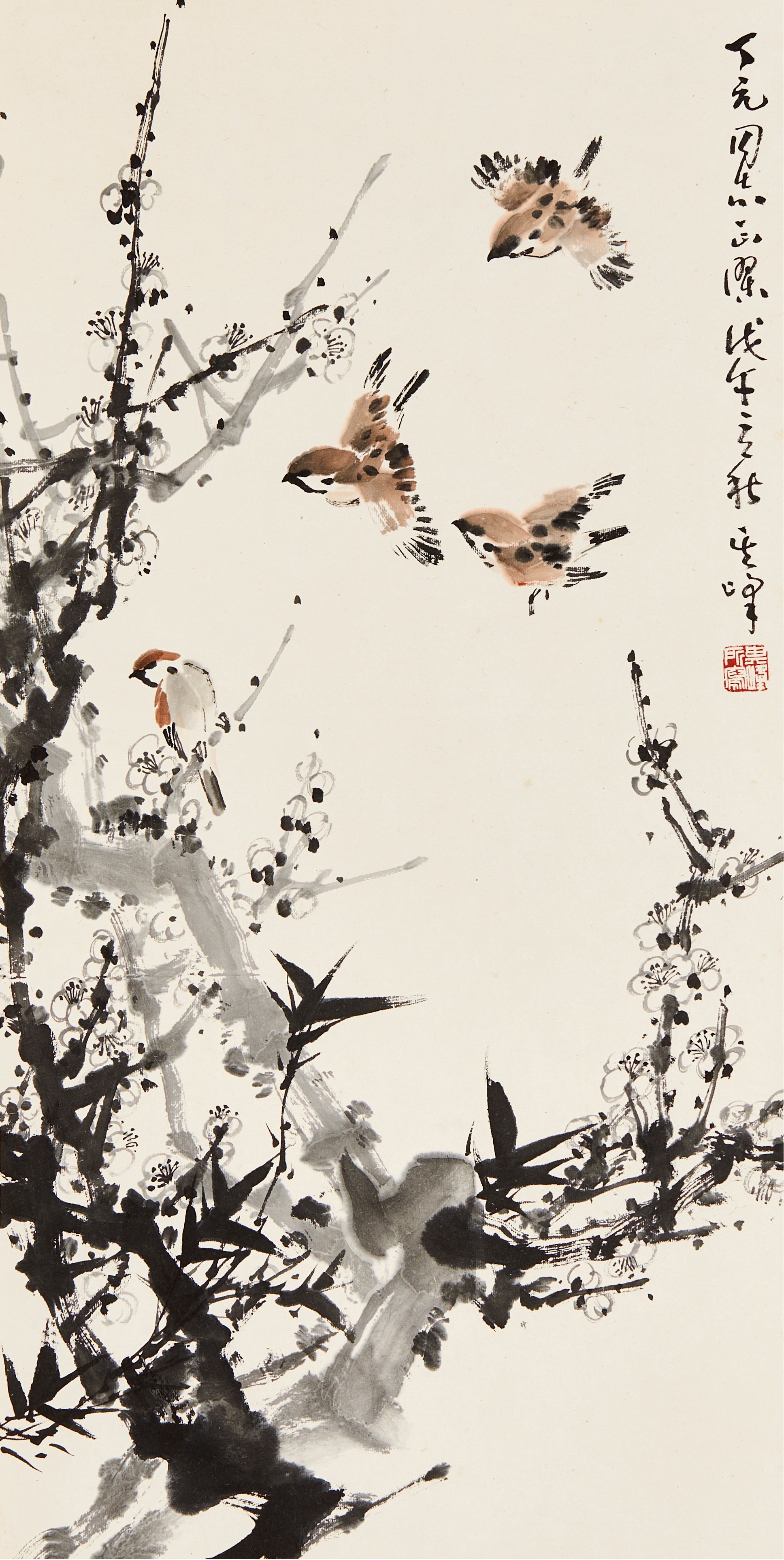 Lot 171 孫其峰(1920~2023)梅雀圖 1978年作 75.5×38cm 立軸 紙本 款識(shí):丁元同志正璨。戊午立秋,其峰。 印文:其峰所寫(xiě) 估價(jià) RMB 5,000-8,000