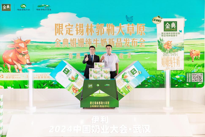 (伊利集團(tuán)副總裁徐克、錫林郭勒盟品牌建設(shè)促進(jìn)中心主任閆利軍共同發(fā)布金典限定錫林郭勒牧場娟姍純牛奶)