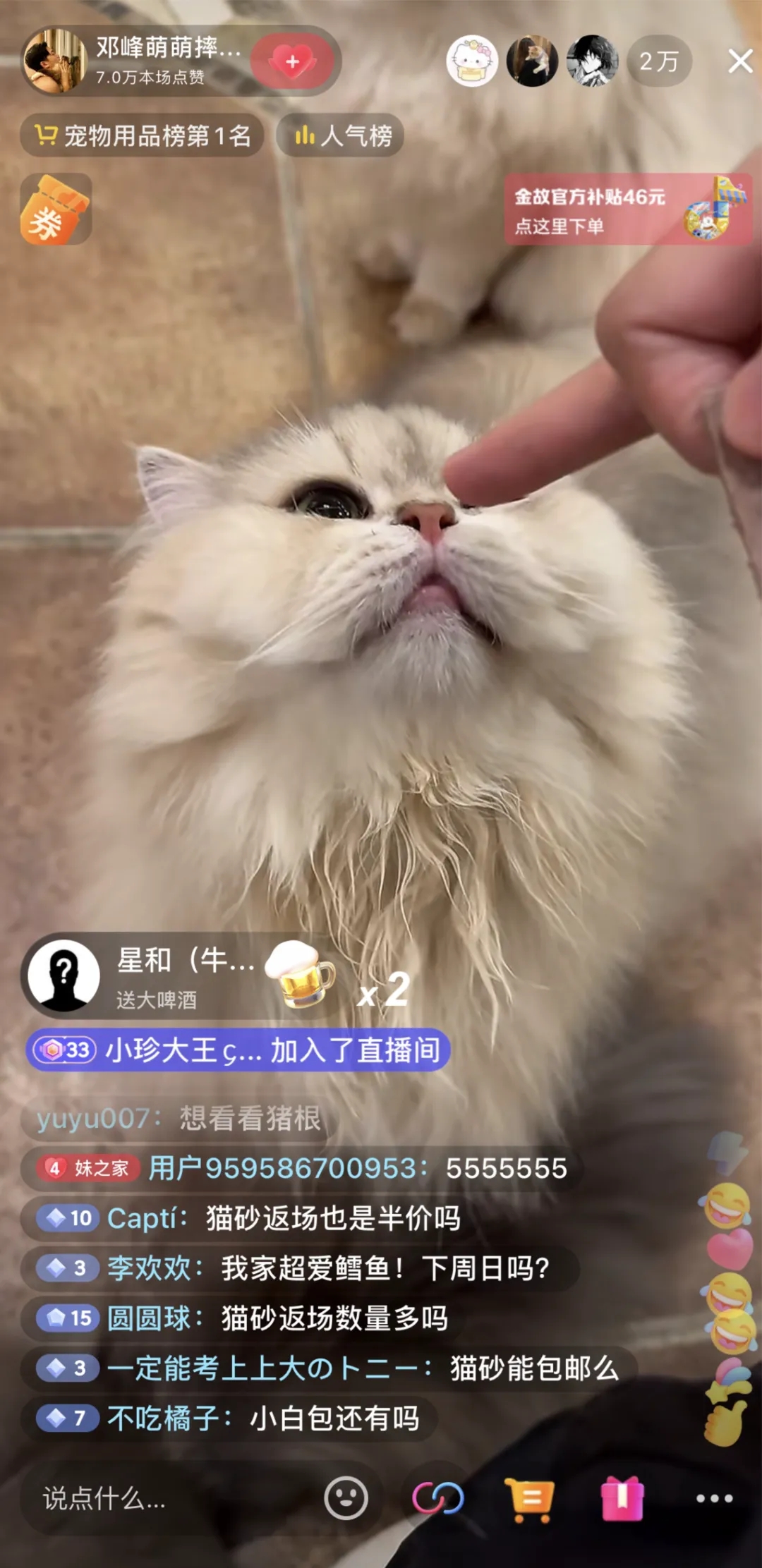 消費(fèi)者購買寵糧時(shí)最大的痛點(diǎn)就是安全性和營養(yǎng)功能,鄧峰的抖音賬號(hào)內(nèi)容全部主角都是他繁育的高顏值貓咪,直播中也會(huì)不斷有貓咪出鏡,人貓互動(dòng)。直播中現(xiàn)場給貓咪投喂,過程中鄧峰還會(huì)隨時(shí)解說其他貓咪的反應(yīng)。他的貓舍就是天然直播間,消費(fèi)者看著被他養(yǎng)出盛世美顏的貓咪,很自然地就被種草。