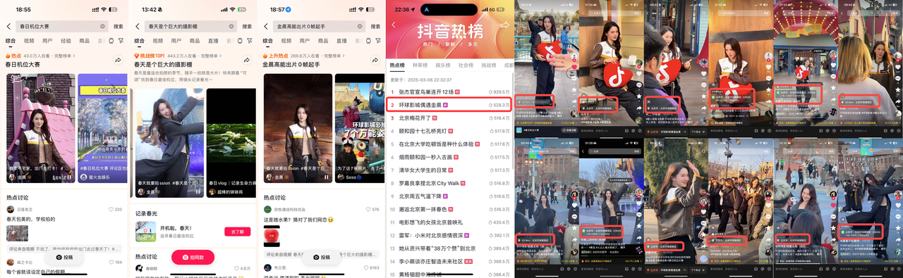 明星+全域資源,引爆消費(fèi)熱浪 抖音生活服務(wù)「城市奔赴計(jì)劃·春游季」玩轉(zhuǎn)明星和商家CP組合,玩出不少新花樣!金晨×北京環(huán)球影城組成最搶眼CP——金晨帶著千萬粉絲的熱度,連發(fā)3條爆款視頻,每條都輕松收獲百萬點(diǎn)贊,#環(huán)球影城偶遇金晨等熱搜更是霸屏11+次!粉絲自發(fā)帶POI定位發(fā)布“同款機(jī)位”內(nèi)容,吸引7億多網(wǎng)友圍觀,助力北京環(huán)球影城交易額沖上新高!